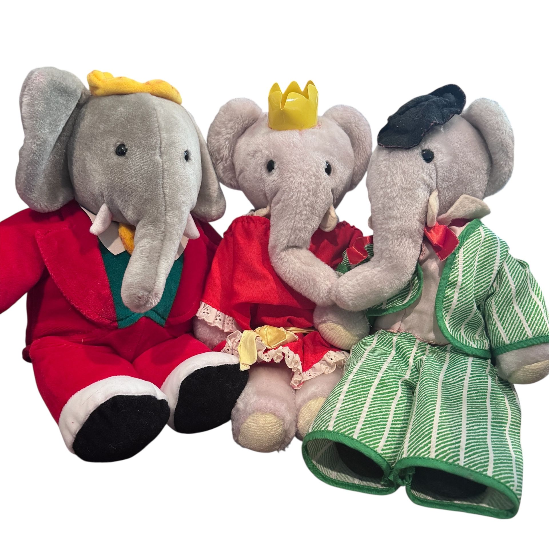 VINTAGE SET OF (3) BABAR ELEPHANT & FRIENDS STUFFED ANIMALS