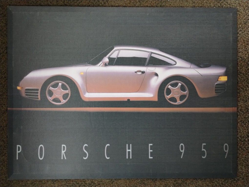 Very unique older Porsche 959 fabric print stretched into a wooden frame. The pic is printed on what almost looks like nylon, and it's nicely made. It has a few marks from improper storage, but no tears or rips. Perfect for the art room, garage, or Porsche collector. Pickup in south Auburn.