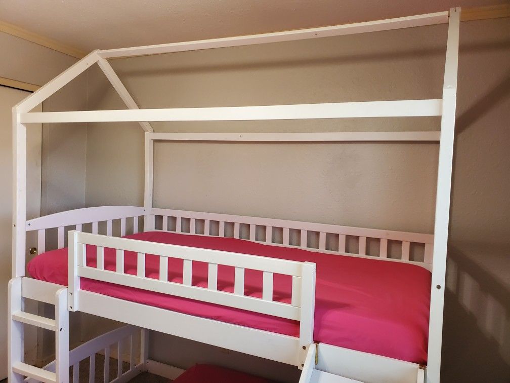 White Kids Playhouse Twin Bunk Beds With Ladder and Slide. MUST GO THIS WEEK, By Feb Fri, 20th.