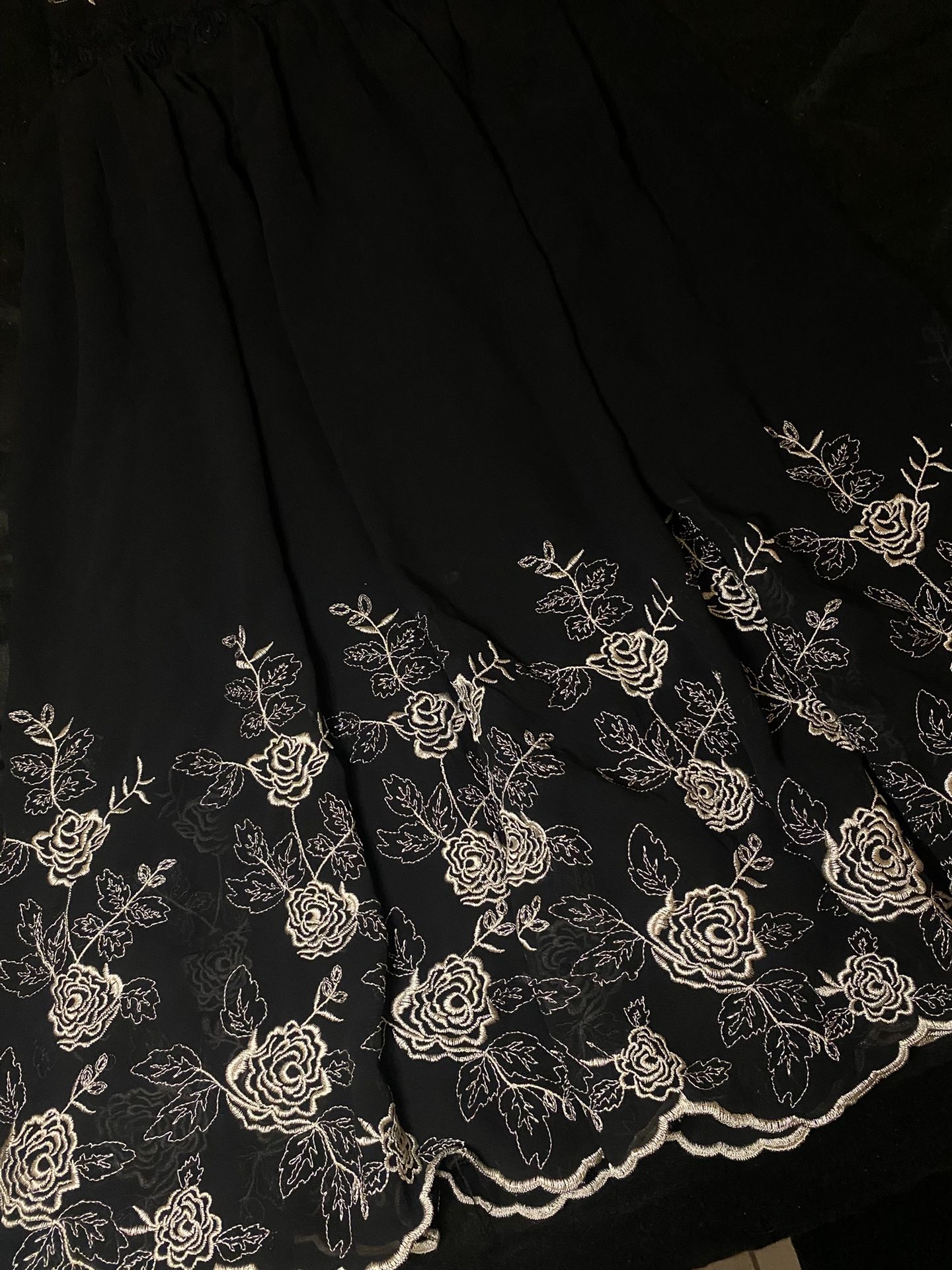 Black floral dress, wavy, in wearable condition in Size: M Please don’t forget to checkout my other listings!🌸 Cash only