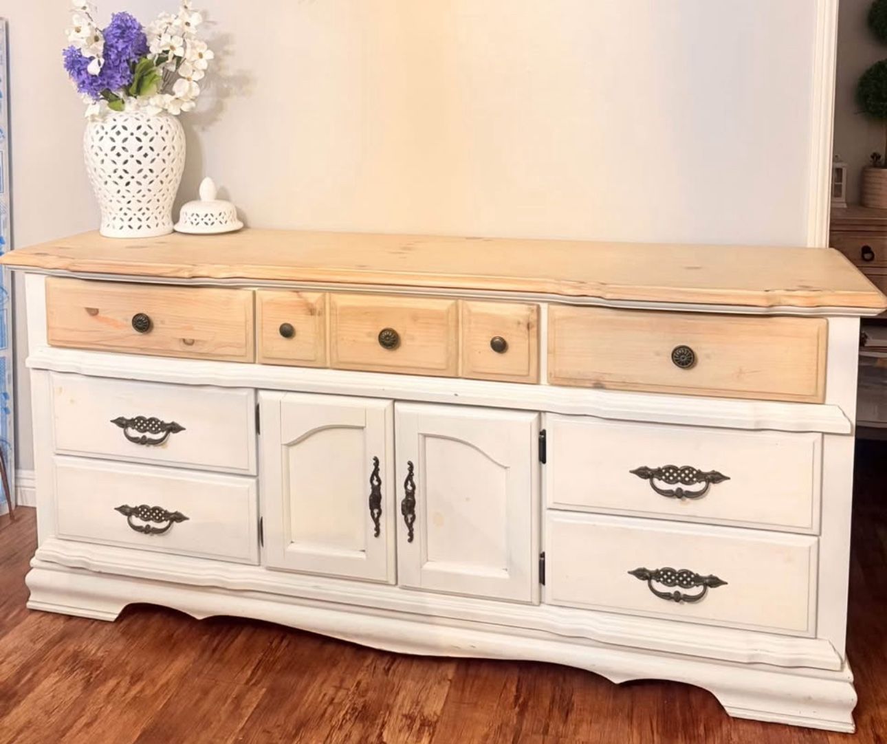 Vintage dresser in great condition like new, it has 9 drawers ! Nothing broken! The dresser is all wood. Length: 72 inches Width: 20 inches Height: 33 inches