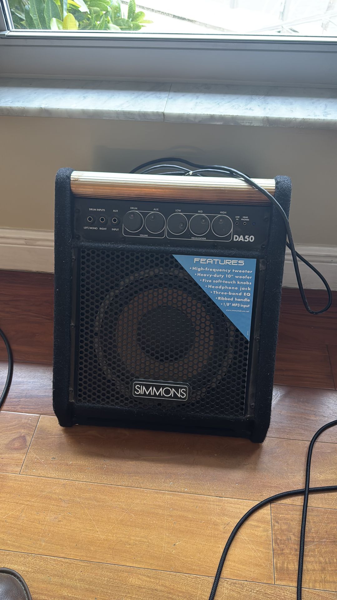 Simmons DA50 Electronic Drum Monitor – 50W Great sounding drum monitor with 10” woofer and tweeter. Loud enough for practice, rehearsals, or small gigs. Includes headphone output, 3-band EQ, and aux input for backing tracks. Works perfectly.
