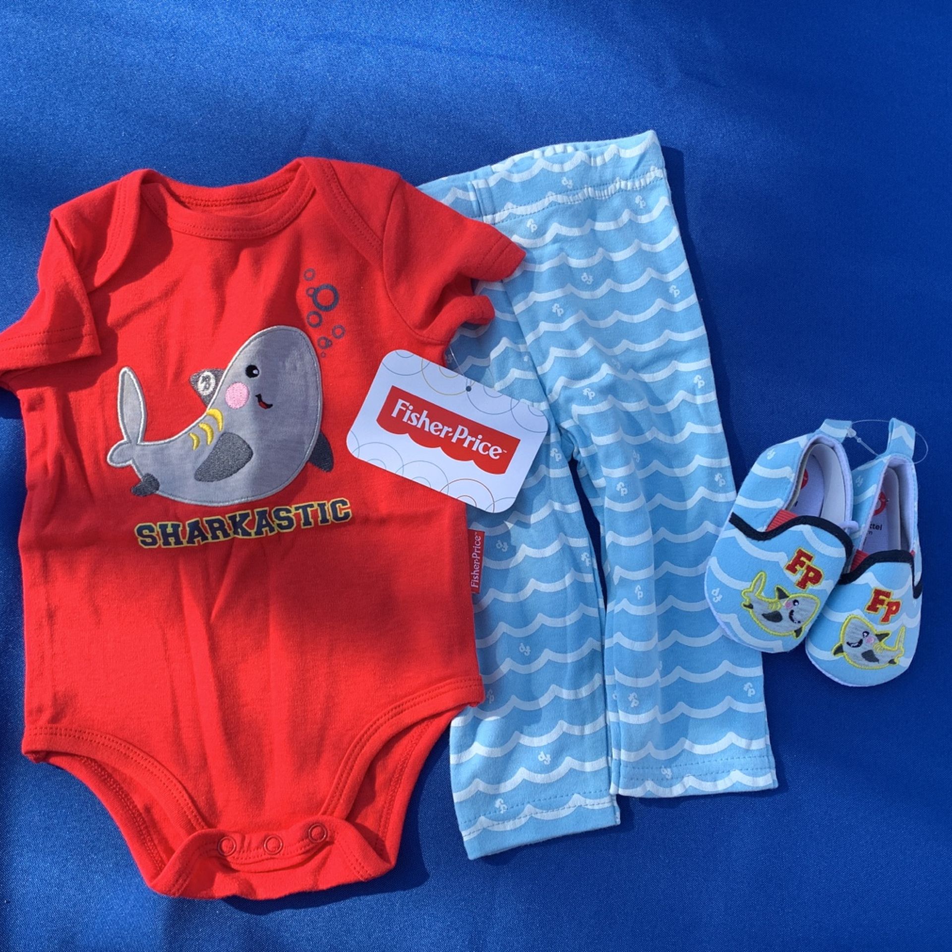 Onesie, pants and shoes size 3-6 months $5 firm set New with tags