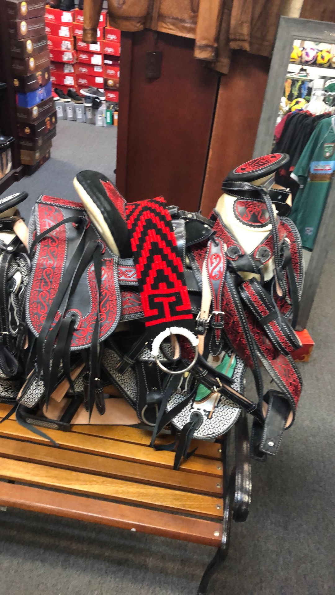 Hecha en México,100% piel súper bordada con preciosos diseños charros en toda la montura,con asiento forrado de cuero súper cómodo,el precio de la montura incluya la cabezada,las correas para las espuelas,el cincho y la pechera,lista para recoger o entregar,tenemos delivery disponible.