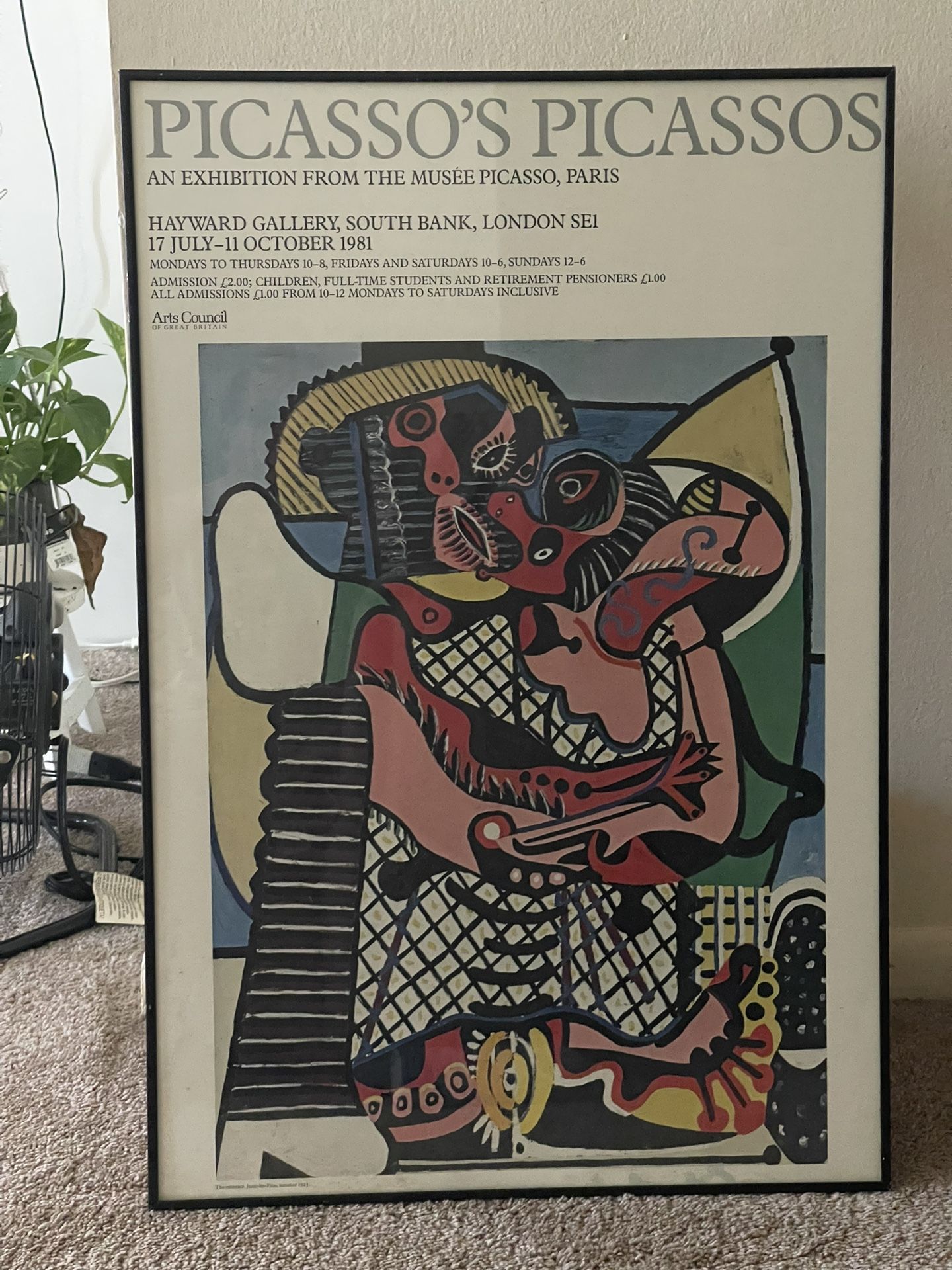 Poster glass framed Picasso’s Picasso 1981 Hayward Gallery South Bank London Sei 30 x20 in great condition asking $125 Pickup in the Westmont IL Area ( I DO NOT SHIP )