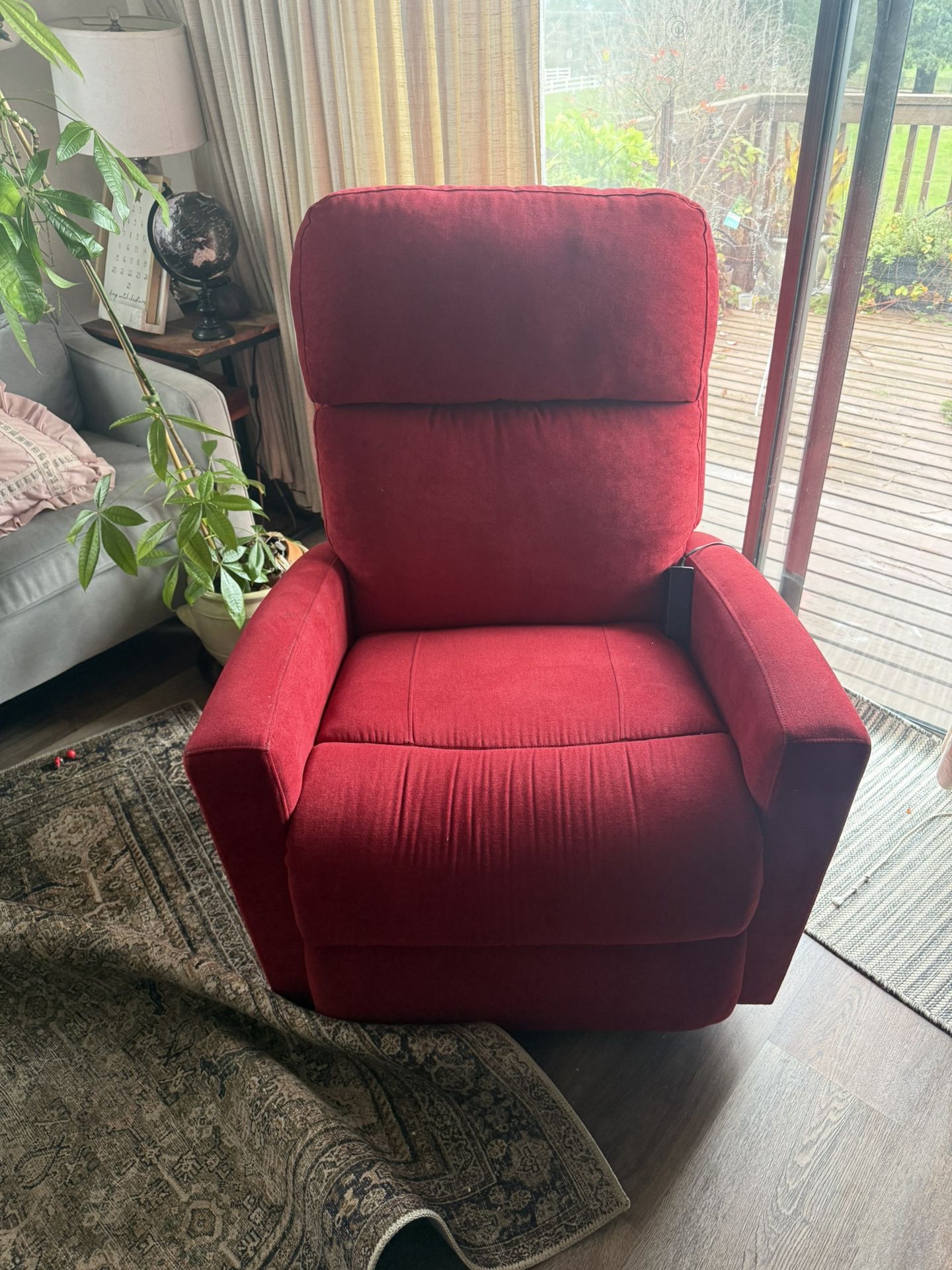 Recliner in very very good condition. Needs a new home. Head reclines and front lifts up. We loved it but sadly have to get rid of it.