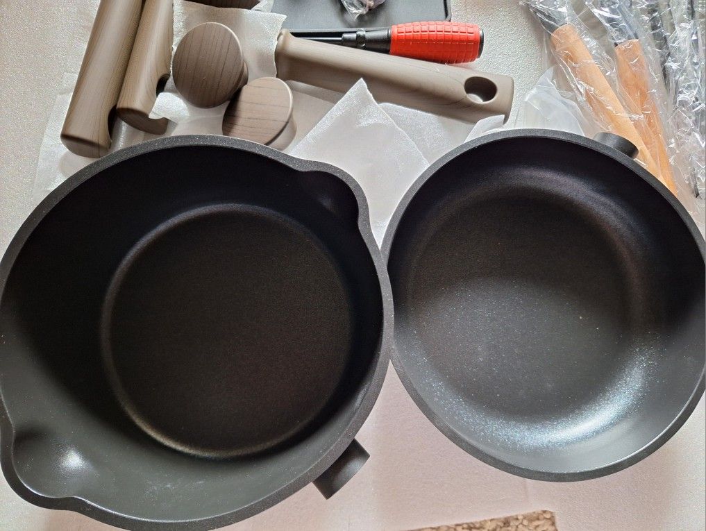 Astercook kitchen cookware set NEW with deffects! Pots and pans are deformed (look pictures please) 3 pans, 1 saucepan, 1 pots 3 lids + cooking set
