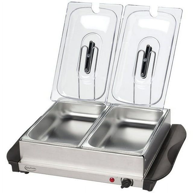 BETTY CROCKER BUFFET SERVER/WARMING TRAY Retail for $63+ Tax on Walmart ( See the last picture ) Condition: Brand New, Unopened Box📦 Pick up from our Santa Clarita. Details Brand : Betty Crocker Model : BC2587CY Product Dimensions : 18.85 x15.1 x6.05 Betty Crocker Buffet Server & Warming Tray with Additional 5 Quart Vessel Use as a warming tray, or a 2 serving buffet server Includes Two 2.5qt vessels, Plus One 5qt vessel for larger portions Stainless steel frame Keeps warm for up to 3 hours Removable lids with cool touch knobs Integrated spoon notch in lids BETTY CROCKER BUFFET SERVER/WARMING TRAY - BC2587CY Unique design allows the unit to be used as a warming tray, or add 2 serving vessels to act as a buffet server, 2 serving vessels are 2.5 quarts each, for a total capacity of 5 quarts ADDITIONAL 5 quart vessel insert for larger portions , Stainless steel frame holds the 2 buffet trays in place, 2 separated stainless steel buffet trays keeps food and liquid warm for up to 3 hours, Removable see-through lids with cool touch knobs, Integrated spoon notch in lids ensure serving spoons rest comfortably with lid in place, Place dishes directly on the stainless steel warming plate to keep prepared food warm .Betty Crocker Buffet Server & Warming Tray with Additional 5 Quart Vessel Product information: Assembled Product Weight 11.44 lb