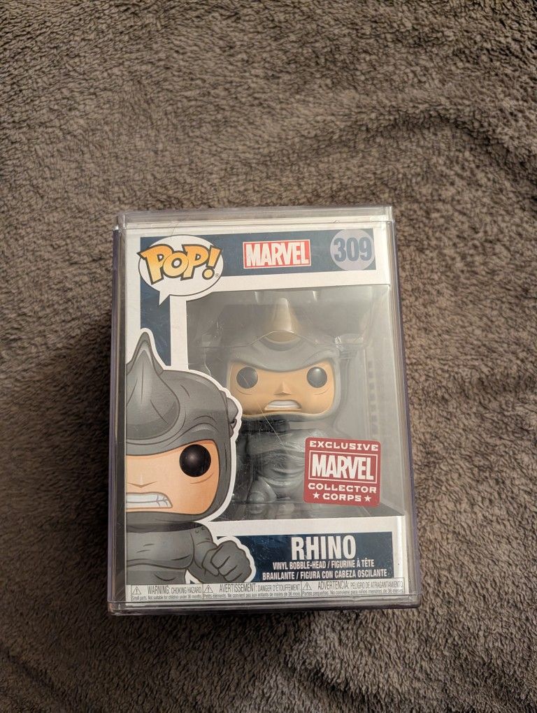 Marvel Collector Corps Rhino Funko Pop – Exclusive – Great Condition For sale: Rhino Funko Pop! from the Marvel Collector Corps exclusive line. This version of Rhino is a must-have for any Marvel or Spider-Man fan! 🦏 Highly detailed design 📦 Exclusive release – not sold in regular stores ✨ Great condition (box in good shape – see photos) 🚫 From a smoke-free home Perfect addition to any Marvel, Spider-Man, or Funko collection. Harder to find exclusive! Message me if you’re interested. Open to reasonable offers.
