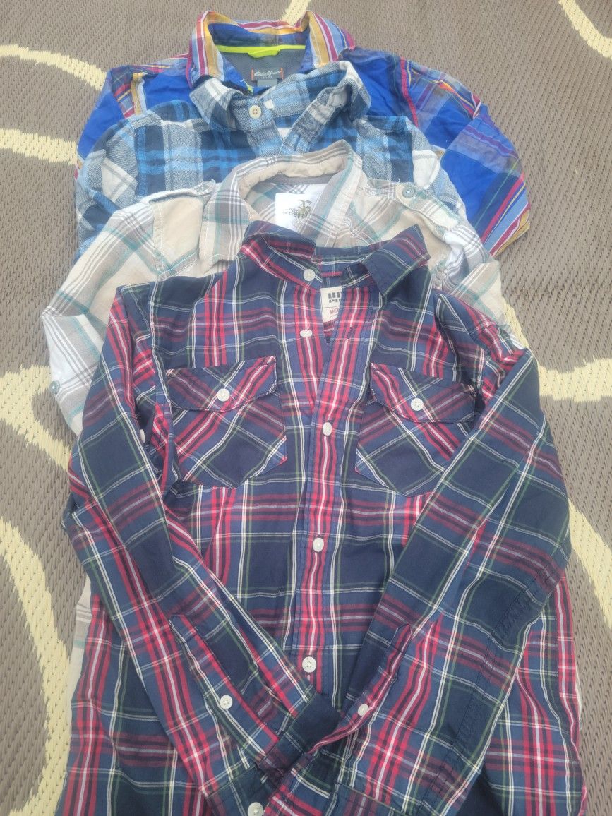 Bundle of 4 size 8 button down plaid shirts. Abercrombie, Eddie Bauer, urban pipeline, epic