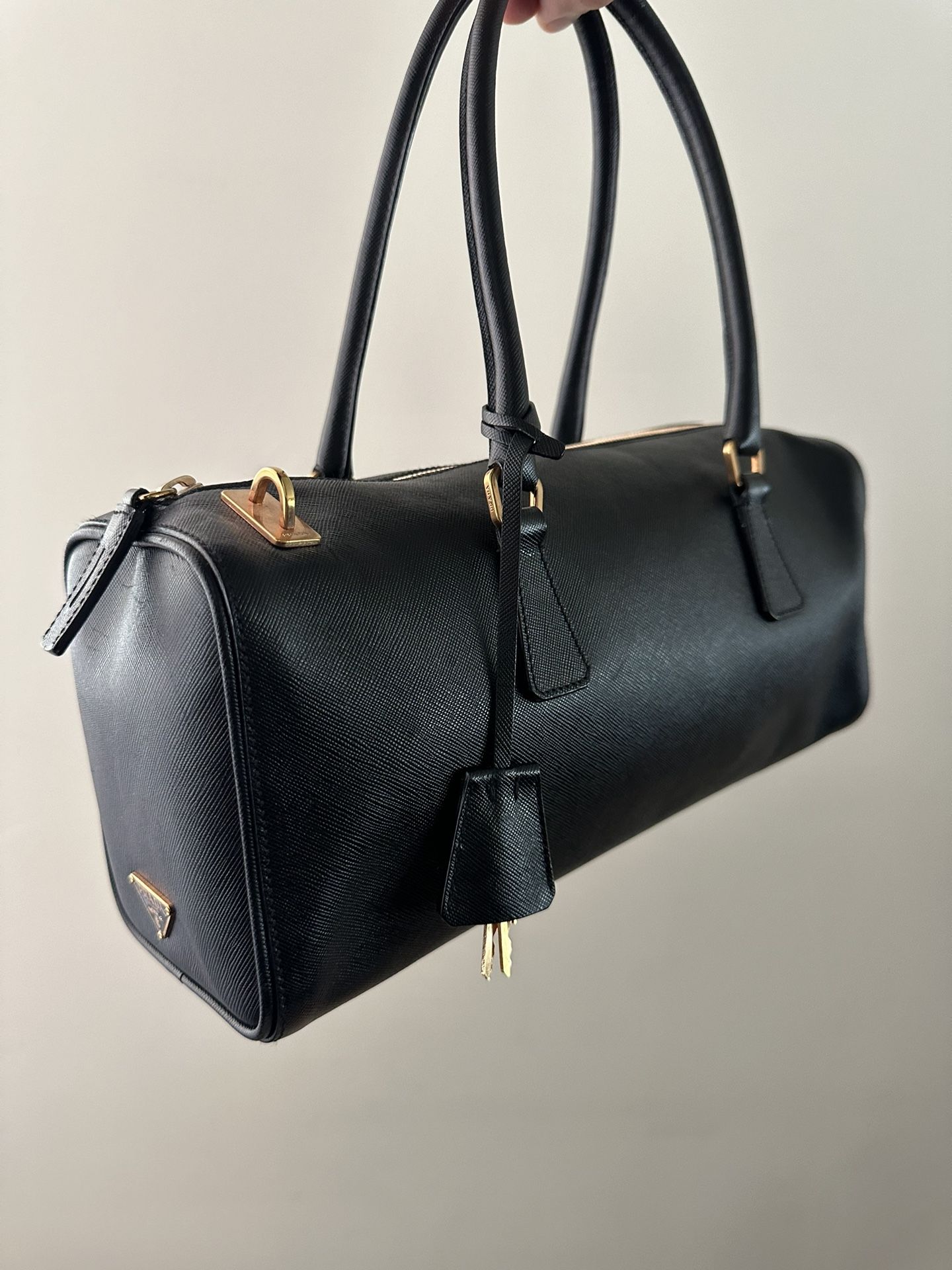 Black authentic leather Handbag style Zipper bag Zipper pocket inside At least 14 years old. Rarely used great condition.