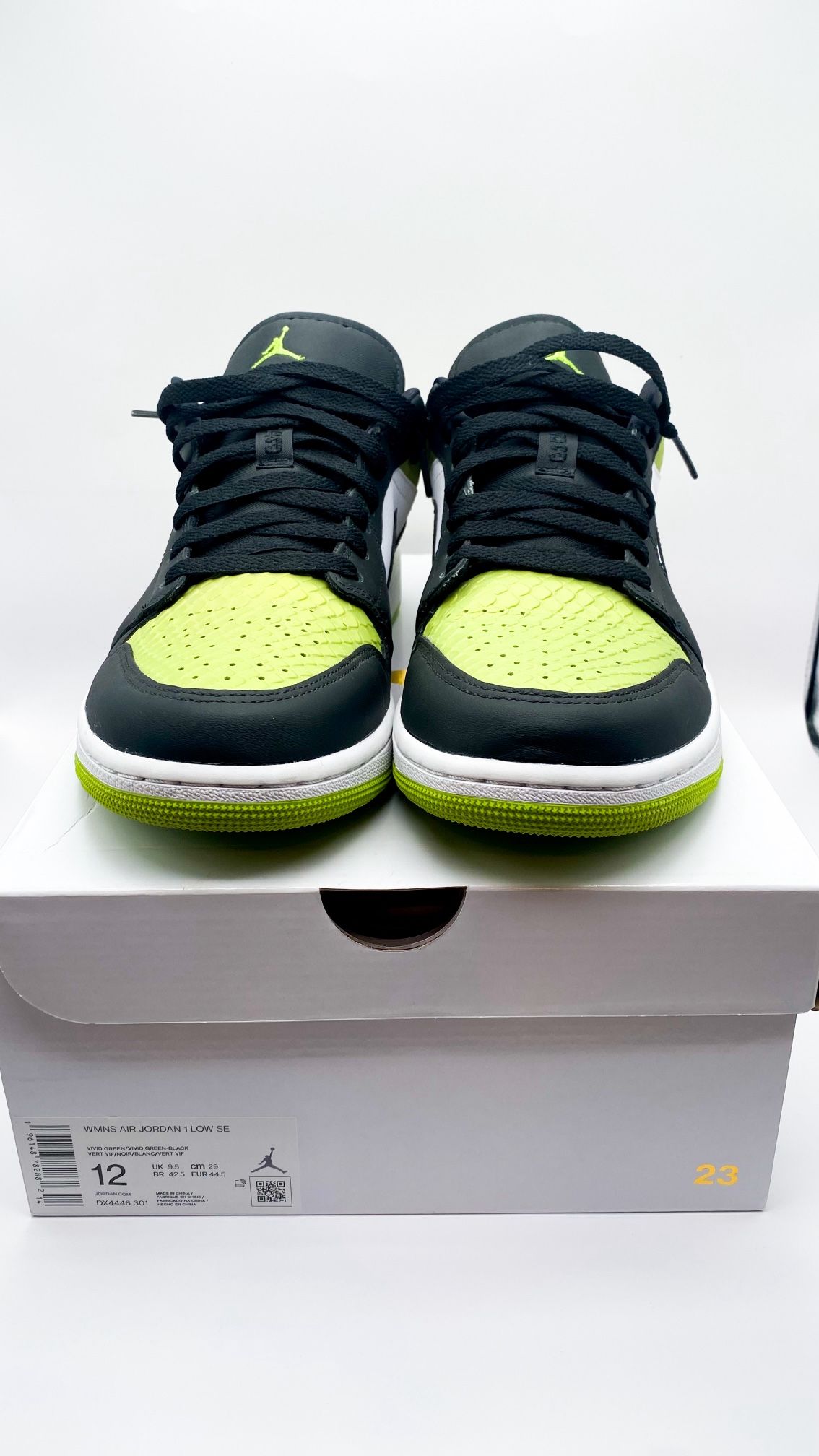 Jordan 1 low SE ‘vivid green snakeskin’ men’s size 10.5. /women’s 12 in excellent “like new” condition. Worn once. Super clean. You won’t see these around. GOAT has for $110 + shipping, fee and tax. So over $150. Selling for pre haggled price of $75. Sharpen your shoe game for cheap. I’d do a lace lab swap or white or green to style them out if I were the one buying them. Cash only pleas