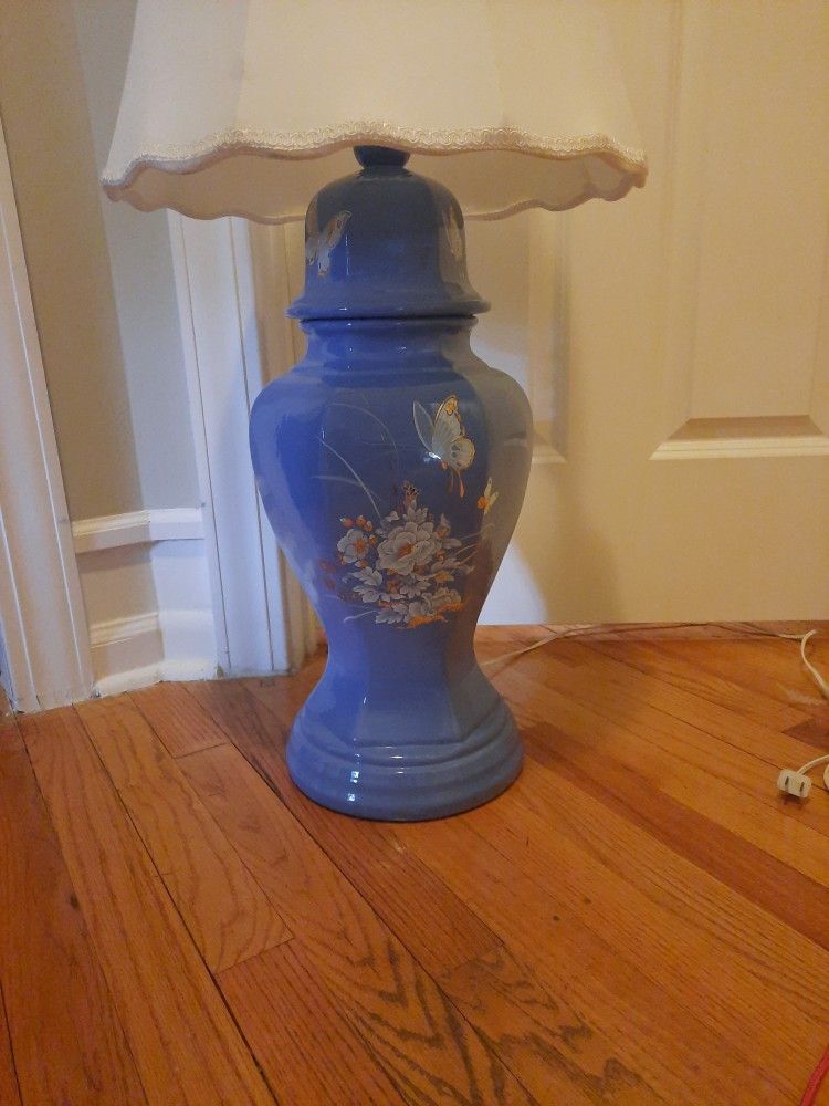 We have a beautiful hand painted with Goldfoil Butterfly Lamp, great condition all working. Asking $50