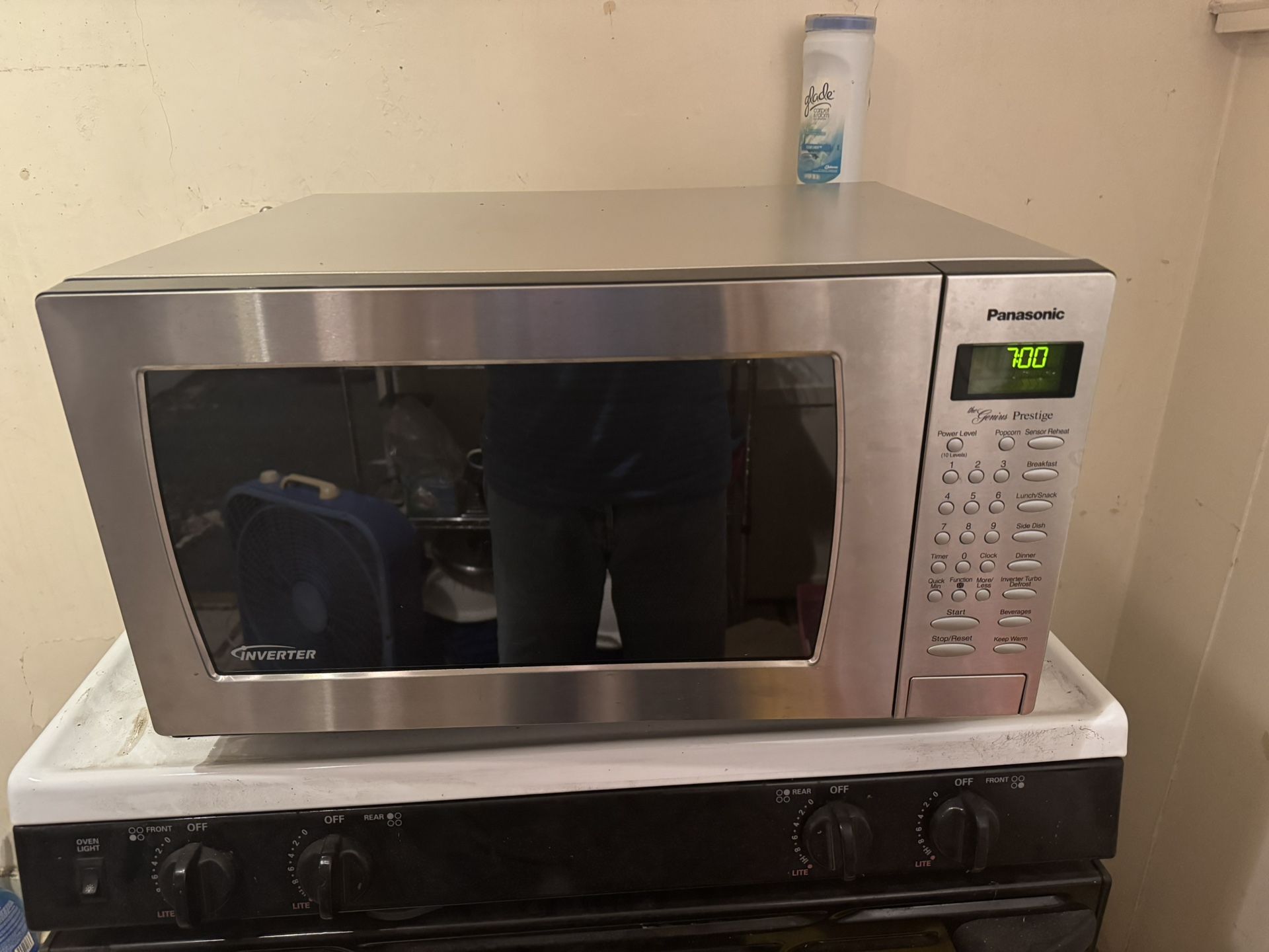 Barely used. Been sitting in storage. The Panasonic Genius Prestige NN-SN797S is a 1.6 cu ft stainless steel microwave that has a 1250 W power output. It features an inverter, quick-minute, keep warm, and one touch genius sensor cooking with an electrostatic touch dial. This microwave delivers consistent microwave energy so that delicate foods can simmer without overcooking.