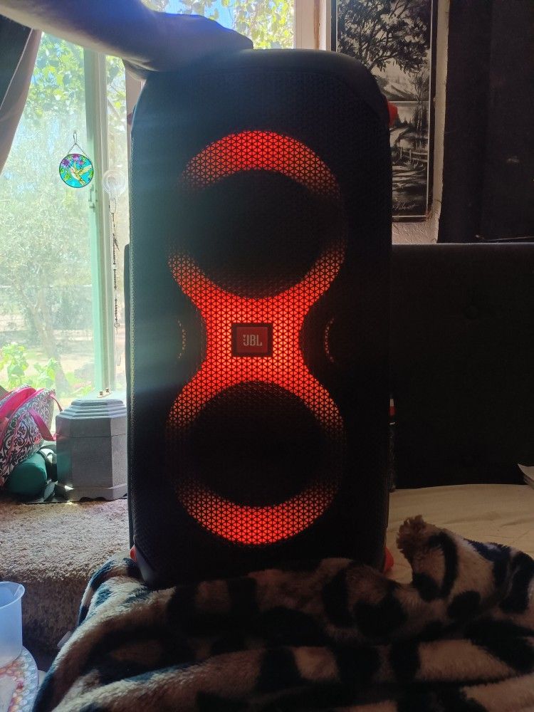 Party box used 1 time no dents or scratches. Still have original packaging and charger cord.