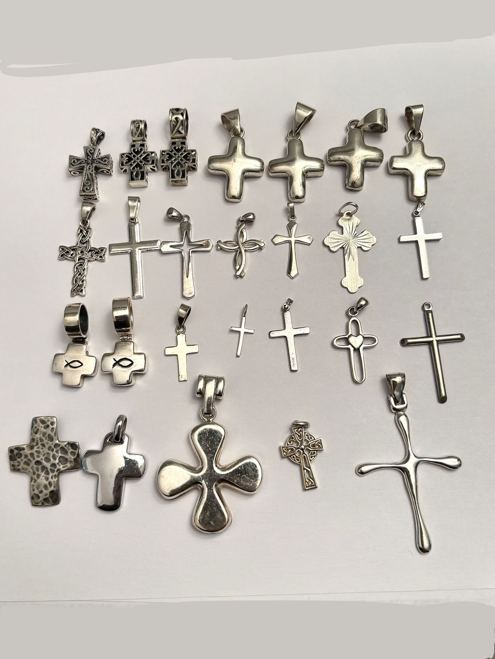 Let me know which ones you want Most are priced from $15-$30 message to get an exact price and if you get a lot of items price may be flexible. If you want all 26 crosses you can take it for $300 All solid Sterling Silver some nice vintage pieces, I might have some chains if you need one to match the pendant I can ship if needed