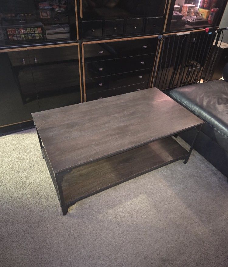 Very sturdy. Has been used. Has a scratch on the top. But still very nice. 44inch×24inch about 18 inches tall