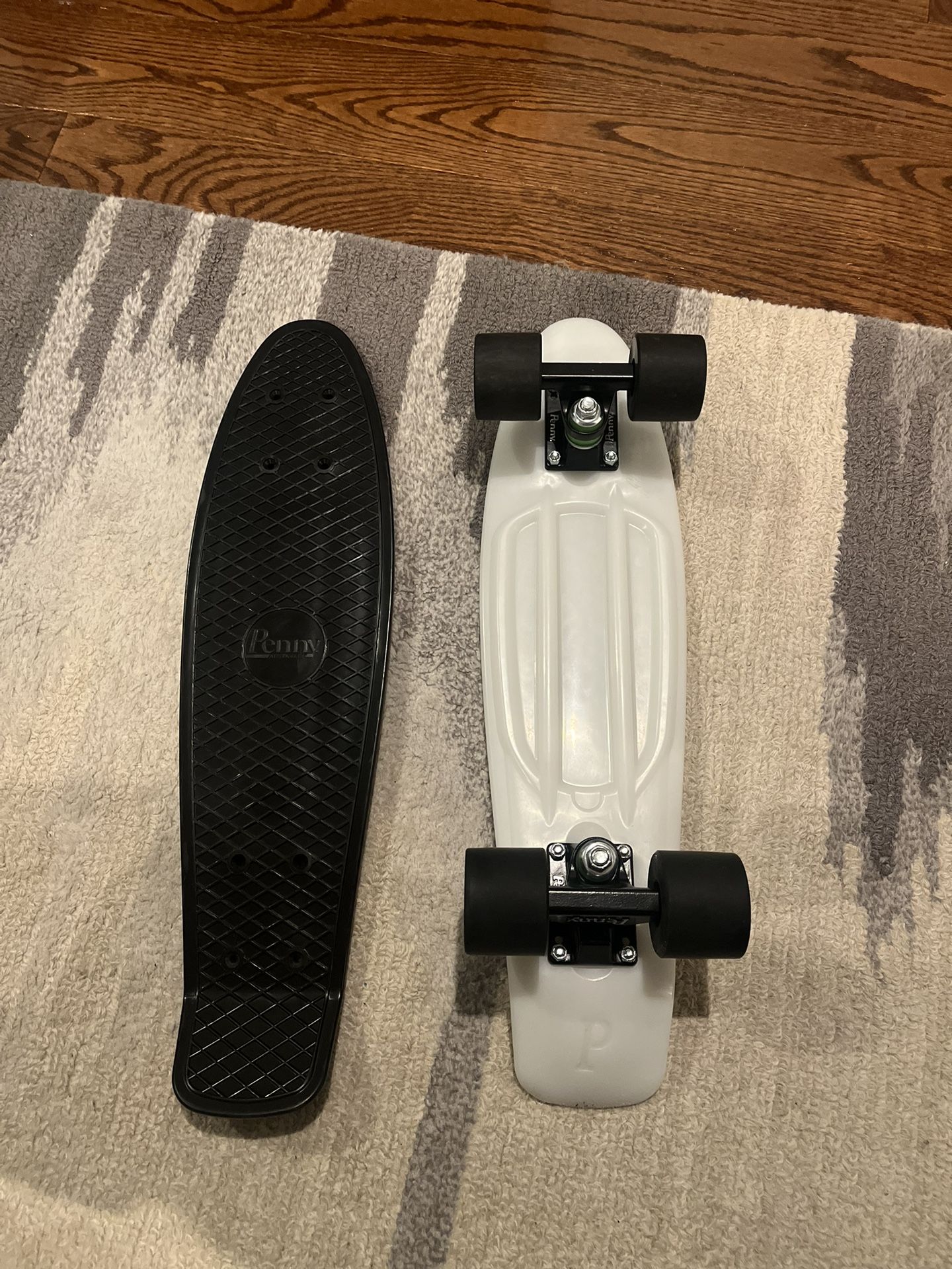 Glow in the dark mini Pennyboard, lightly used. Extra black Pennyboard deck only, same size.