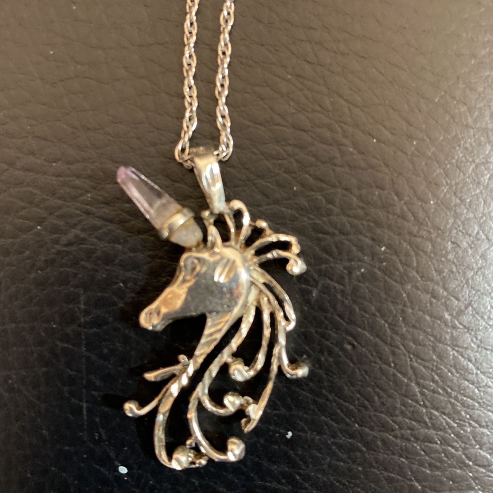 Silver Unicorn Neckless With A Real Crystal For The Horn