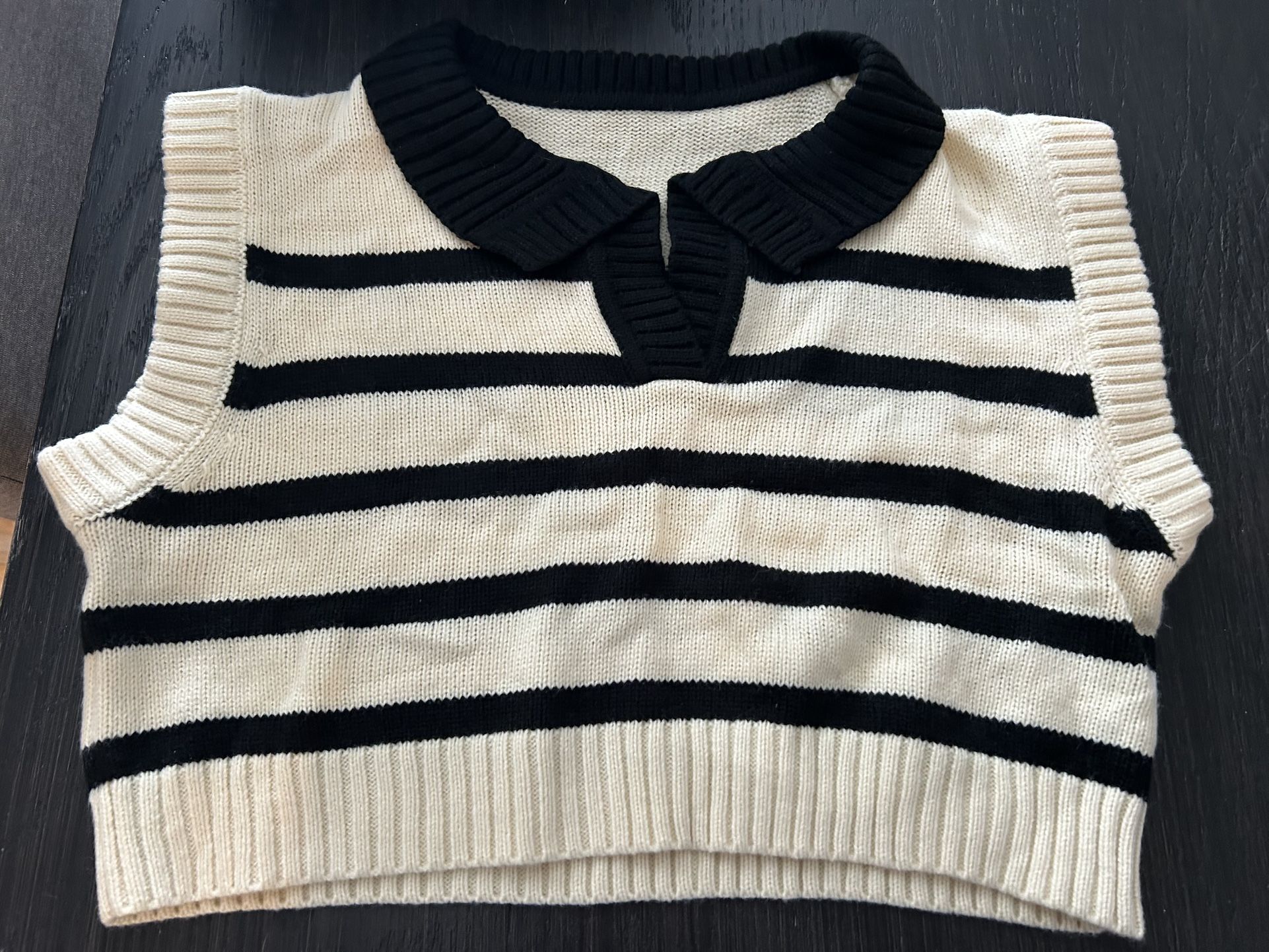 Black and white striped collared sweater vest size small
