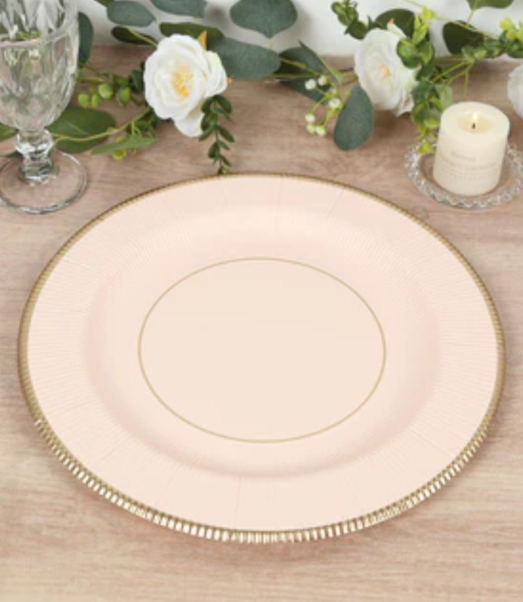 Set of 25 Disposable Charger Plates - Blush w/gold rim