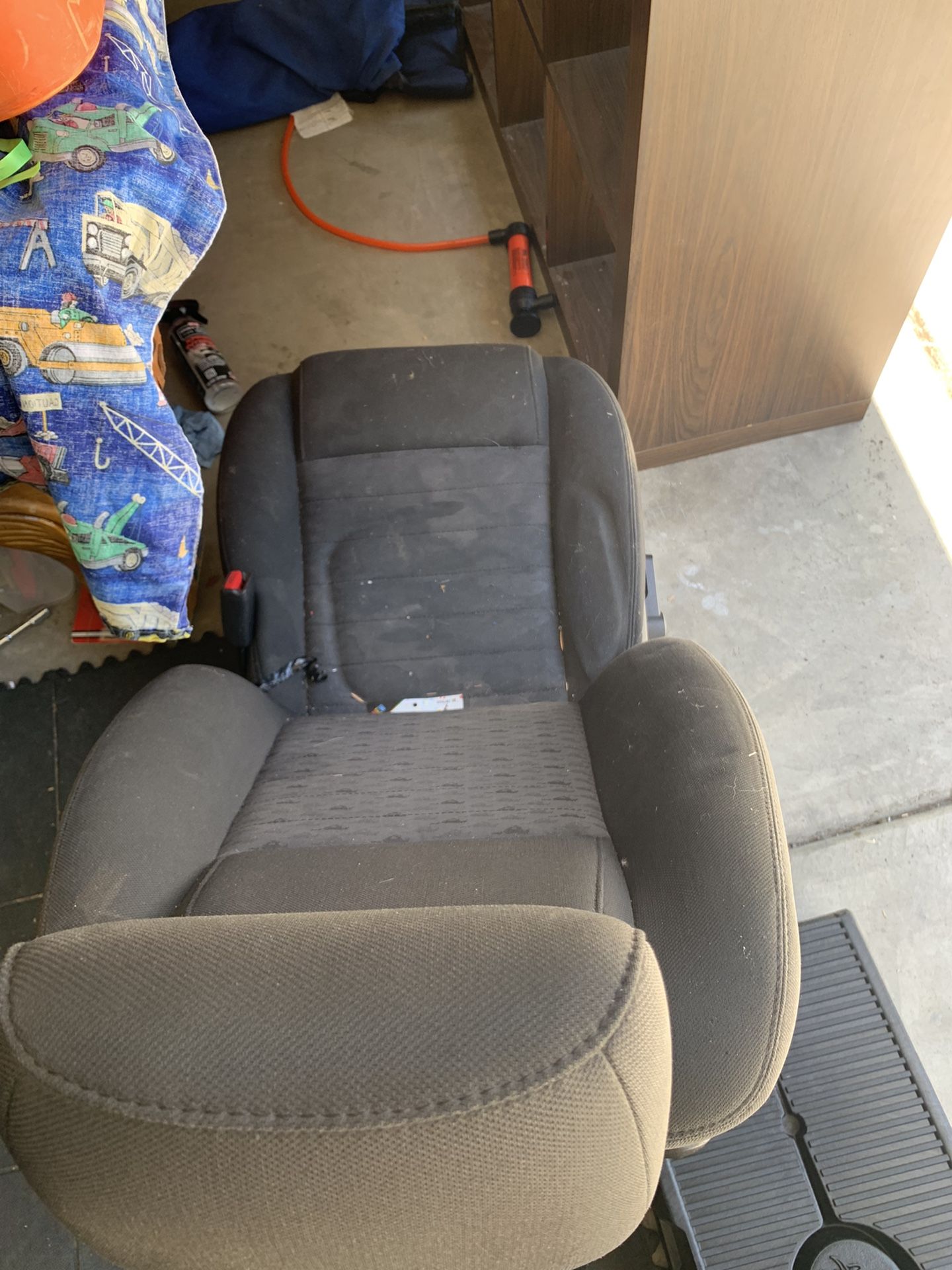 The seat is completely intact it’s the passenger seat it’s just dirty.