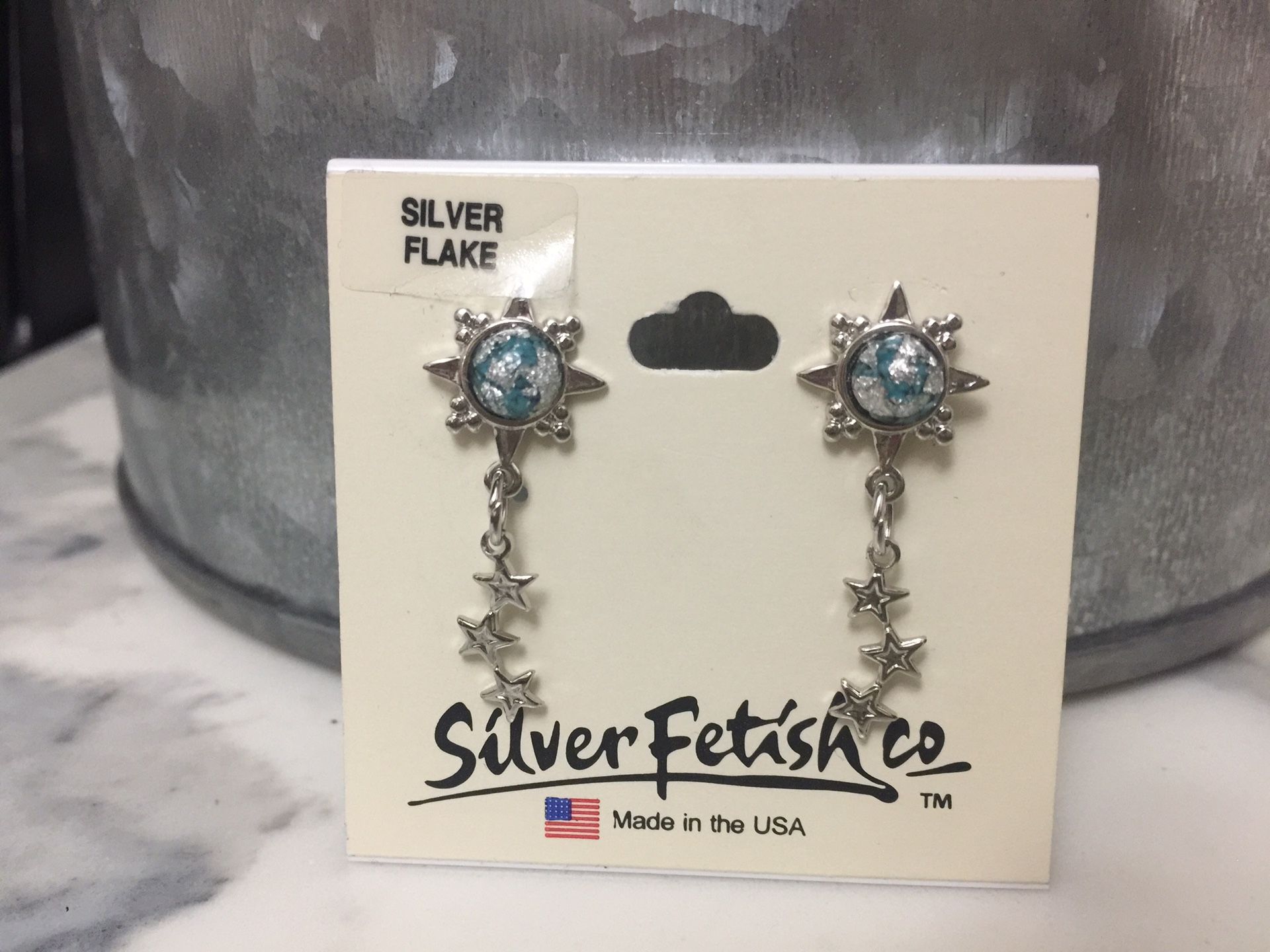Genuine Silver Earrings with Turquoise and Silver Flanks