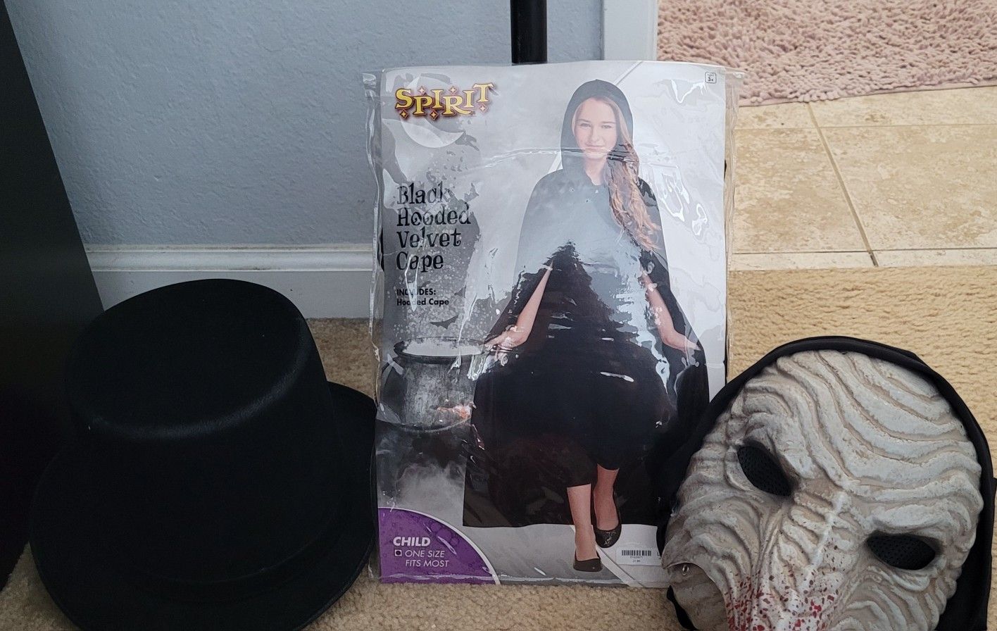 Child suze black hooded velvet cape Mask Velvet hat Skeleton walking stick