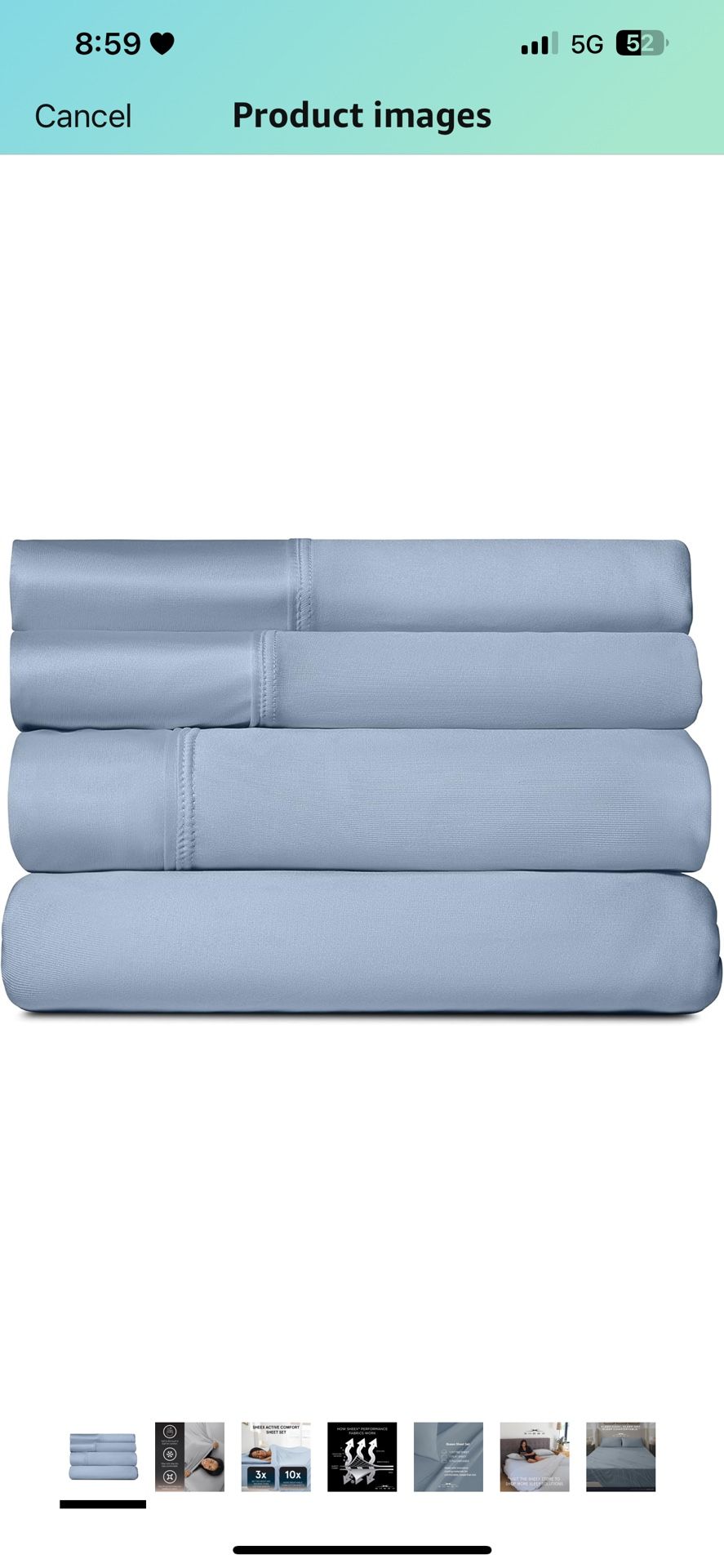 SHEEX - Active Comfort Cooling Sheets Set (Queen) Blue Sky - Moisture Wicking - 1 Flat Cooling Sheet, 1 Fitted Cooling Sheet, 2 Cooling Pillow Covers