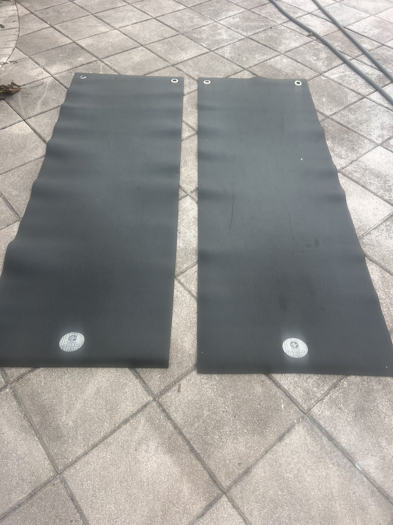 Manduka yoga mat Gym Mat Have around 60 23.5” by 67.5” Also have brackets to hang them on wall