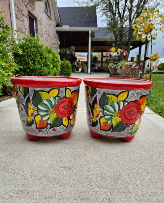 Talavera Molcajete Hummingbird Clay Pots, Planters. Plants.Pottery $60 Cada Una