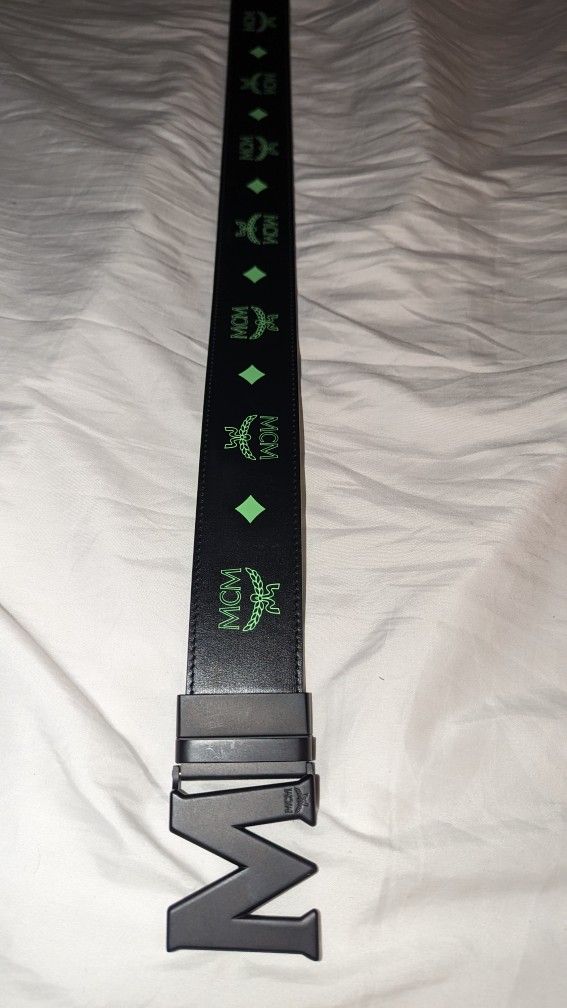 Reversible & sold out online! Retails $389 One size fits most German-born fashion house MCM drew inspiration from its world-renown monogram print yet again, but this time reenvisioning it through bolder colorways and striking construction. The latest collection displays a revamped logo pattern evolved from the classic Bavarian check. This leather belt features a branded buckle. PVD coated buckle 100% cowhide Trim: 100% cowhide Spot clean Imported Width, about 1.77" ABOUT THE BRAND MCM stands for founder Michael Cromer München's initials, and since 1976, the German luxury label has focused on creating travel pieces-backpacks, luggage and oversized totes-as well as shoes and accessories all in its signature Visetos logo- printed coated canvas.