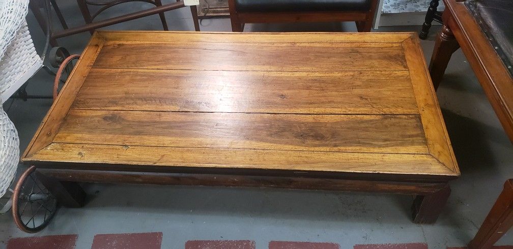 Coffee table with glass top 19 inches high 44 in Long 21 inches deep code 1290 only $85 solid wood table low to the ground 11 in tall 44 in Long 23 in deep code B17 Peddlers Emporium 1160 Athens Highway Grayson 30017 Monday through Saturday 11:00 to 5:30 Sunday 1:00 to 5:00