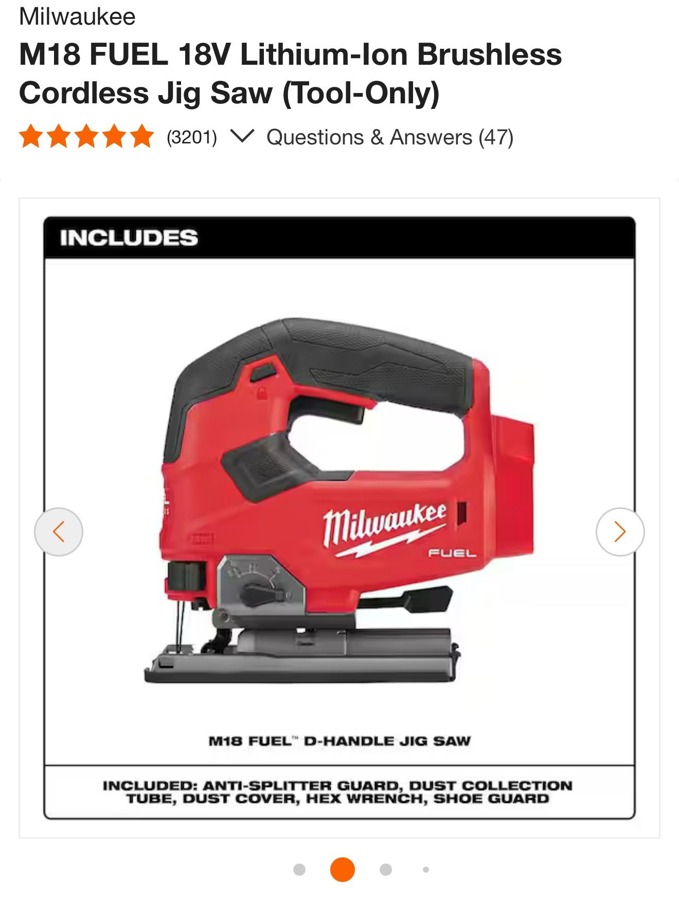 Milwaukee M18 FUEL 18V Lithium-lon Brushless Cordless Jig Saw Tool only