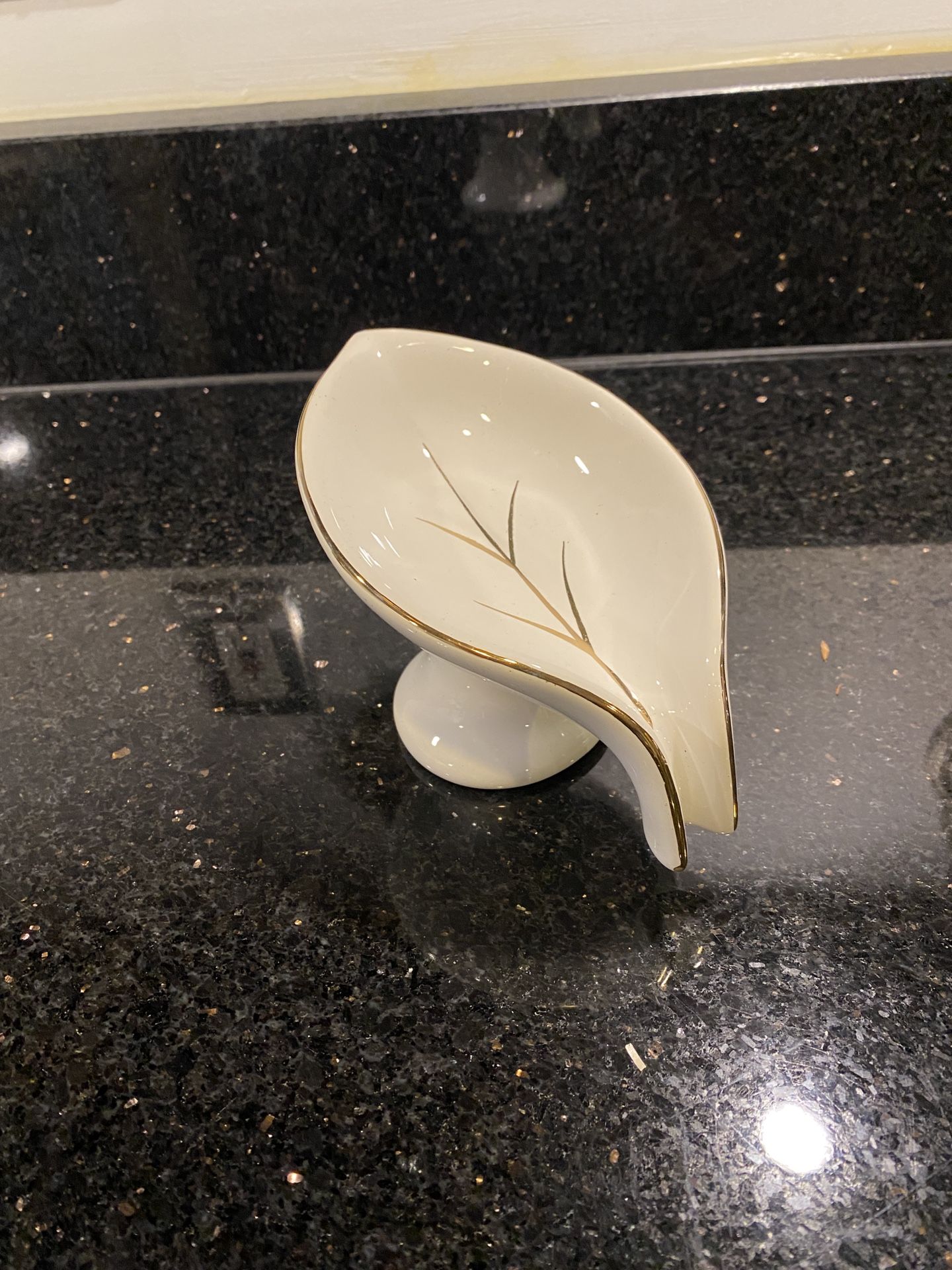 Ceramic Leaf Shape Soap Dish with Drain Waterfall Glossy Glaze Golden Texture