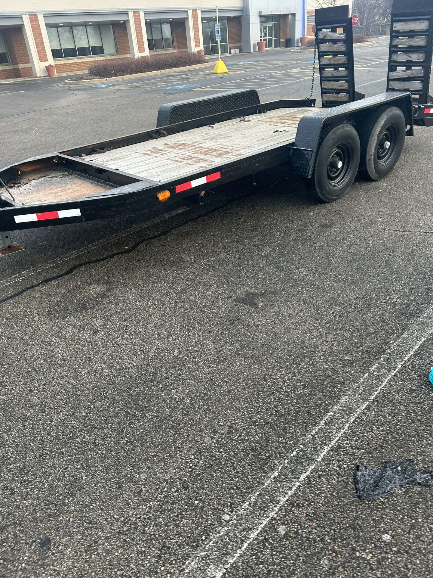 Selling my trailer 16x7 Inside deck measures 74”x 14’ dove tail it’s 2’ Good trailer everything works Good lights tires, and brakes Pintle hitch, 7 pin connect Clean title GVWR 12k