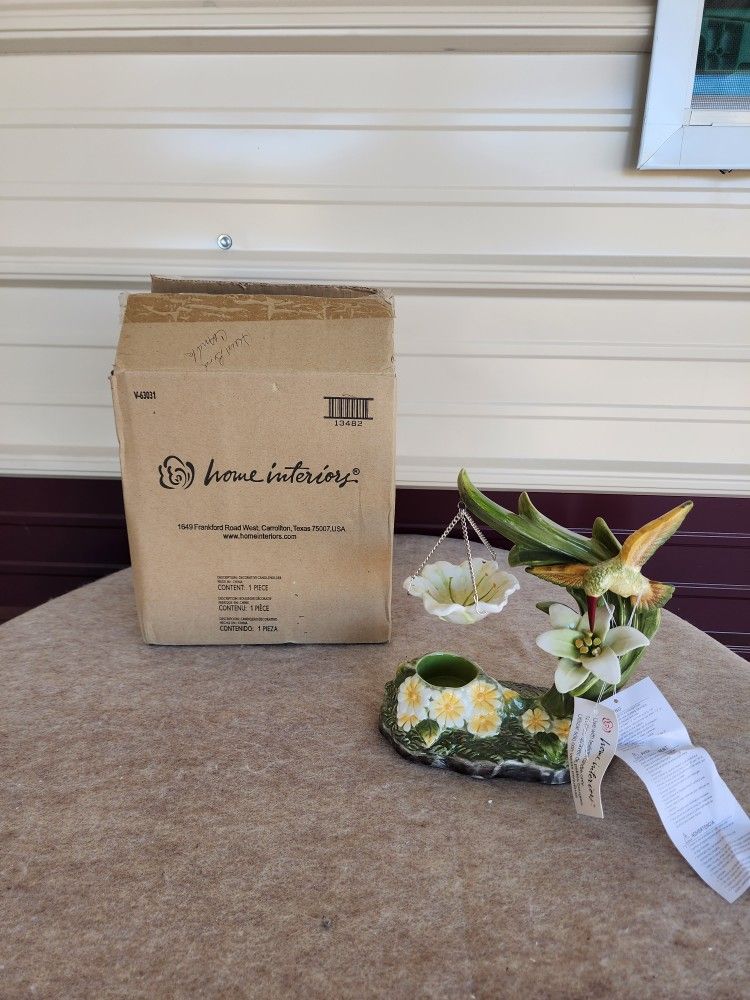 VINTAGE NEW RETIRED HOME INTERIORSHUMMINGBIRD WAX OIL WARMER CANDLE HOLDER 8". My aunt was a Home Interiors in home sales person. I have other Home Interiors items listed with more to come. You can usethis for wax melts or scented oil. Measures approximately 8 inches tall at tallest point. 7.5 inches wide at widest point. 4.5 INCHES DEEP AT DEEPEST POINT. Only taken out of box for pictures. I SHIP SAME BUSINESS DAY IF PURCHASED BEFORE 1030AM. NEXT BUSINESS DAY IF PURCHASED AFTER 1030AM EST.