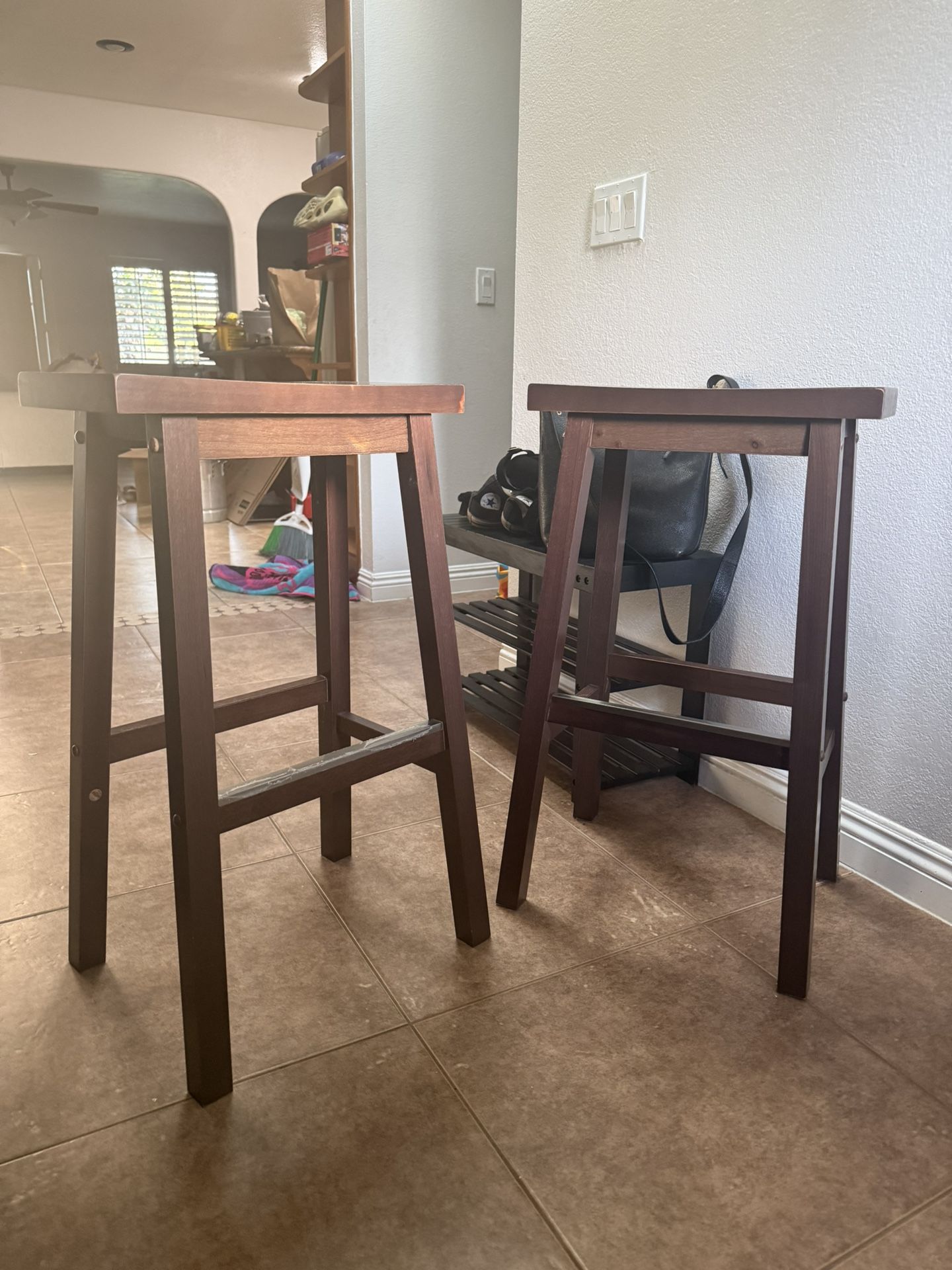 2 Brown Tall Stools
