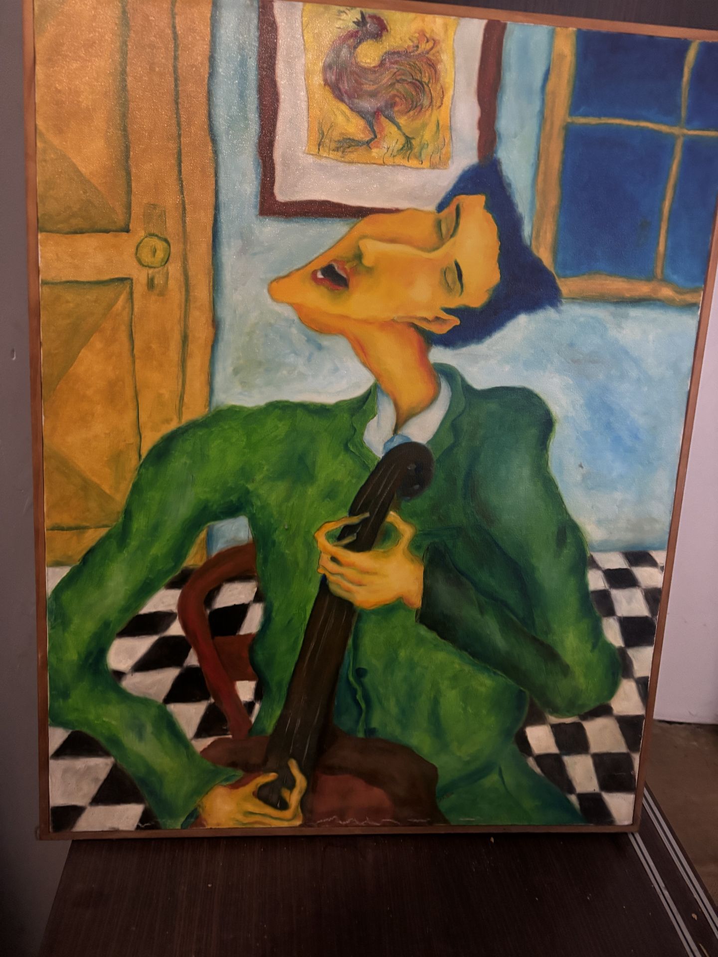 Oil on canvas. Thin wood frame. Signed 22”x27”