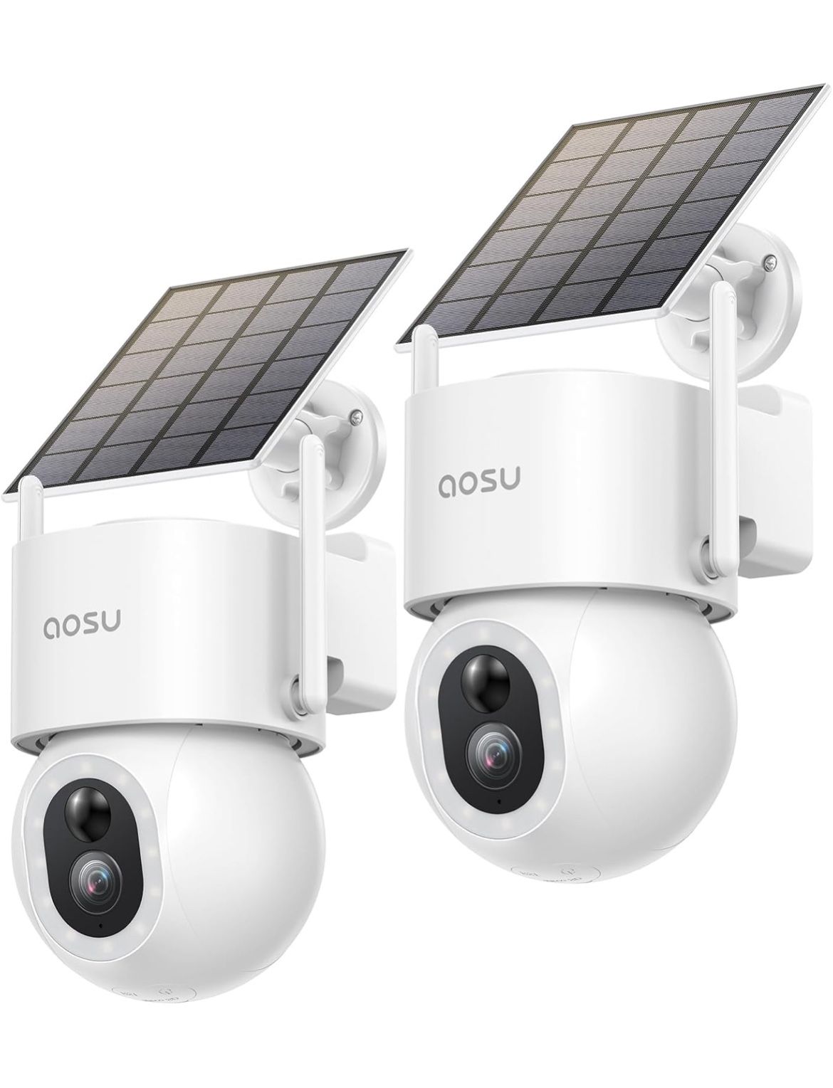 360° Full-Coverage & 3K Resolution: AOSU security camera guards your home and leaves no spot unseen with a 360° panoramic view. The upgraded 3K, 5MP UHD lens lets you see everything clearly. The built-in 400-lumen floodlight lights up the night as if it were day, providing true full-color night vision. ( 2.4Ghz WiFi Only) Enhanced AI Detection: Our advanced security camera recognizes people, vehicles, and pets—all without a subscription fee. Intelligently monitor parked cars, when someone enters the parking zone, the outside surveillance camera will send instant alerts. Our solar camera also identifies fences and walls to prevent intrusions. Solar-Powered & Wireless: Eliminate the hassle of wired installation, this outdoor camera wireless is solar powered and backed by a high-capacity battery to keep it working in the rain or at night. Install it once and enjoy hassle-free security, day after day. Advanced Motion Tracking ((People/Pets/Vehicles): When motion is detected, the outdoor wifi camera automatically focuses on and tracks the movement with quick pans, and tilts while recording at the same time. The floodlight can be triggered manually or motion-activated to ensure clear visibility at all times. Customize Motion Zones & Two Way Talk: Set multiple important zones for protection and monitor what's going on whenever with dome surveillance cameras. Enable sound, light, and siren alerts for your motion sensor camera outdoor. Instant two-way talk helps communicate with delivery personnel, neighbors, or other visitors. Smart Home Compatibiility: Easily connect via Bluetooth to stable 2.4GHz WiFi. Compatible with Alexa and Google Assistant. Share access permissions with family members. Local storage without charge (excluding microSD card) or cloud storage (with subscription). Access and playback anytime and anywhere via the AOSU APP. Trustworthy Name in Security: We focus on family security and privacy protection, all images and videos are encrypted, no one can access the information without your consent. The 1-year after-sale service provides ongoing peace of mind to enjoy a premium experience for an extended period.