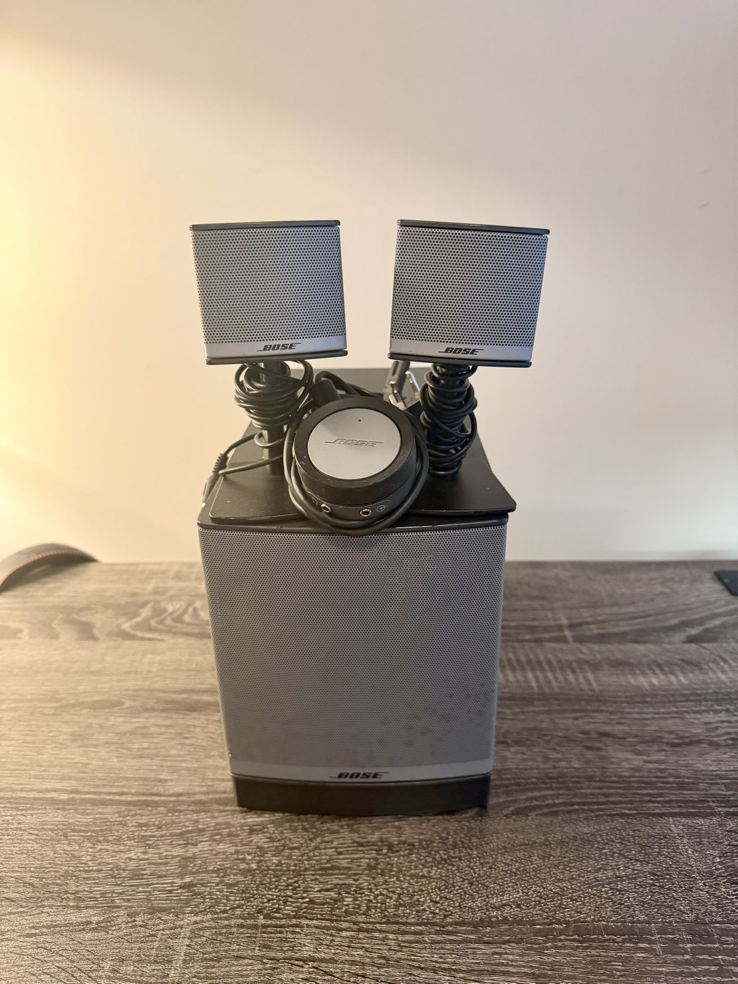 High-end Bose Companion 3 Series II multimedia speaker system in good working condition. This is a premium 2.1 setup with deep bass, clear mids, and crisp highs — great for music, movies, gaming, or a desk setup.