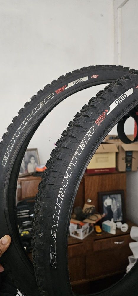 Slaughter and Butcher grid trail2bliss ready tires. Never used!! Both for $75 obo.