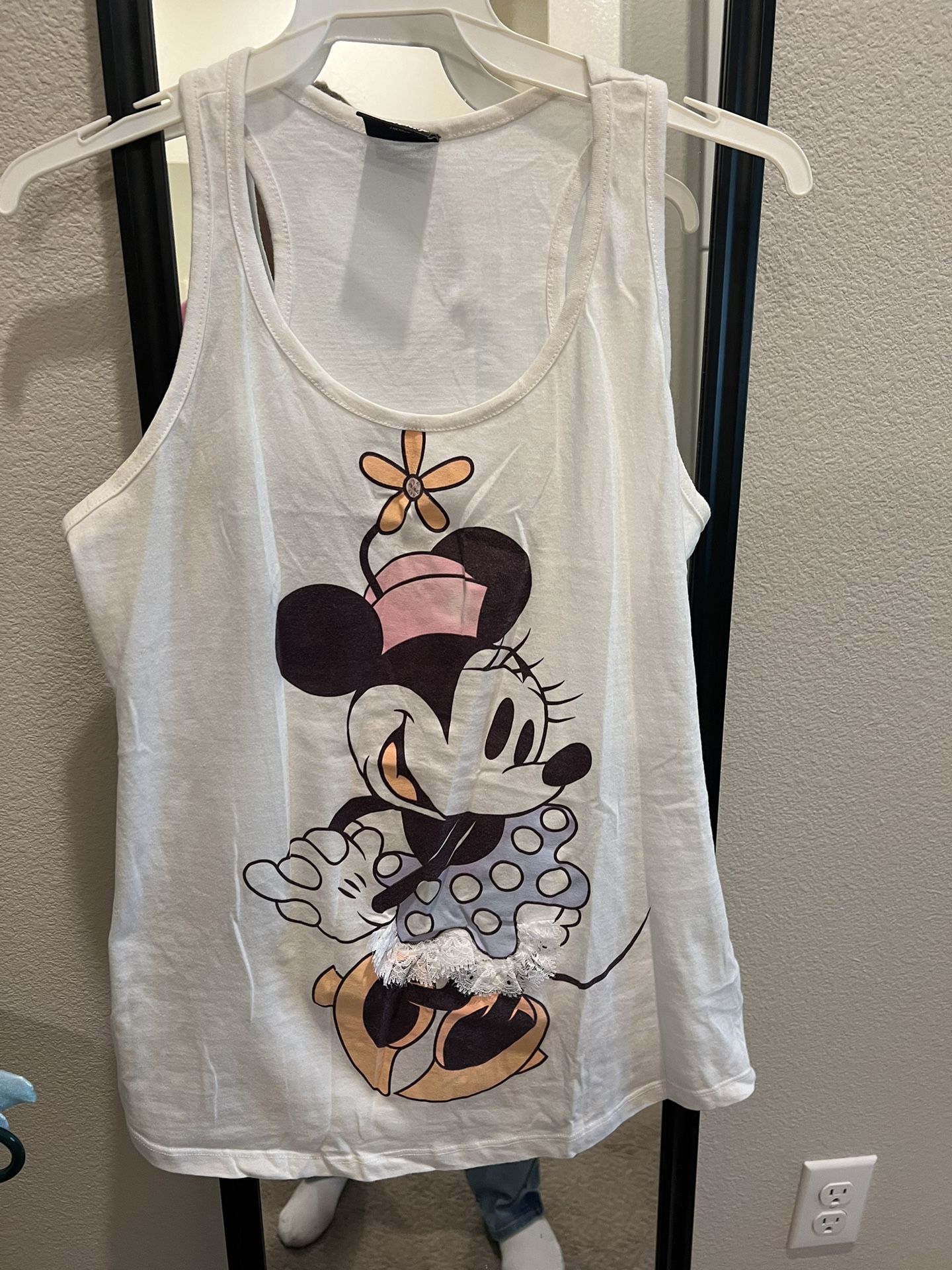 Super unique Disney Tank featuring Minnie Mouse on the front and Daisy Duck on the back. New and never been worn just needs to be ironed. From smoke free home. Has very cute details.