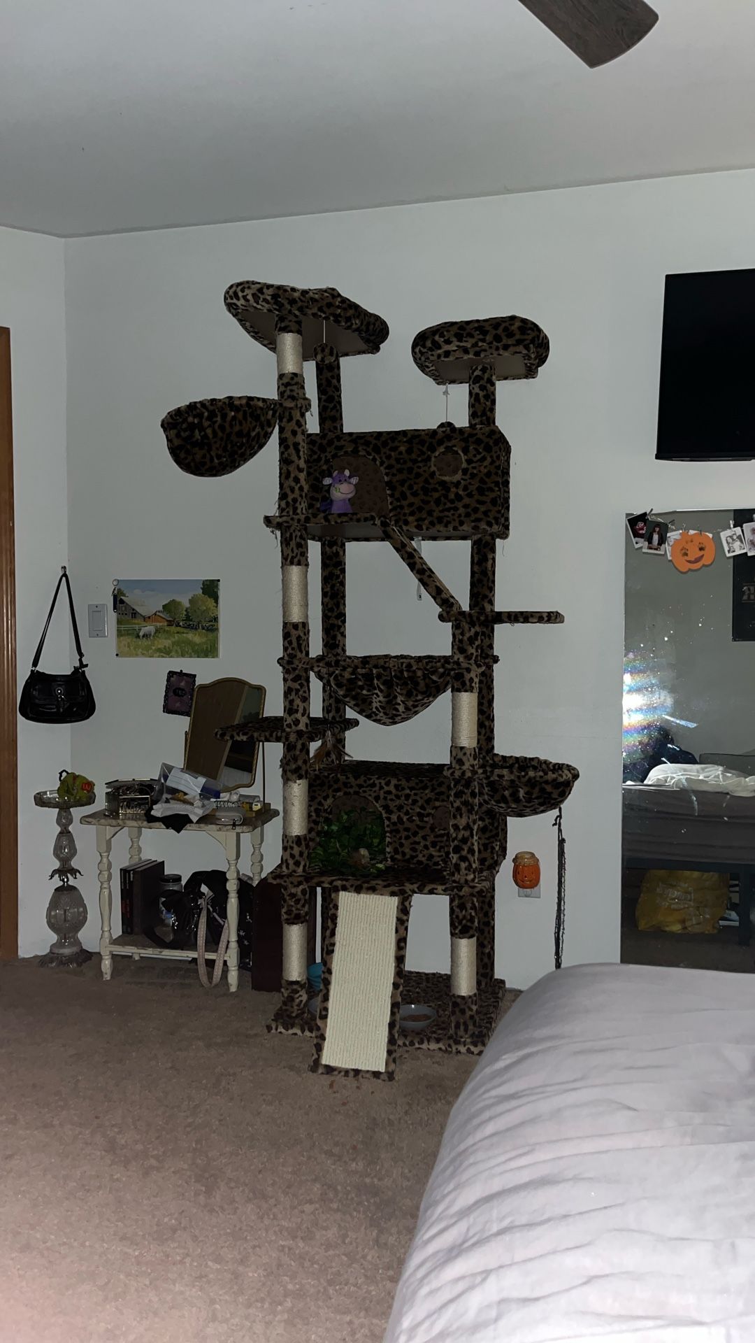 cat tree i bought 3 months ago my cats fully lost interest in it and has resorted to another tree we have since it’s so big i want the extra space there is only damage to the scratching parts and that is all on the left side😭 my boy is a climber