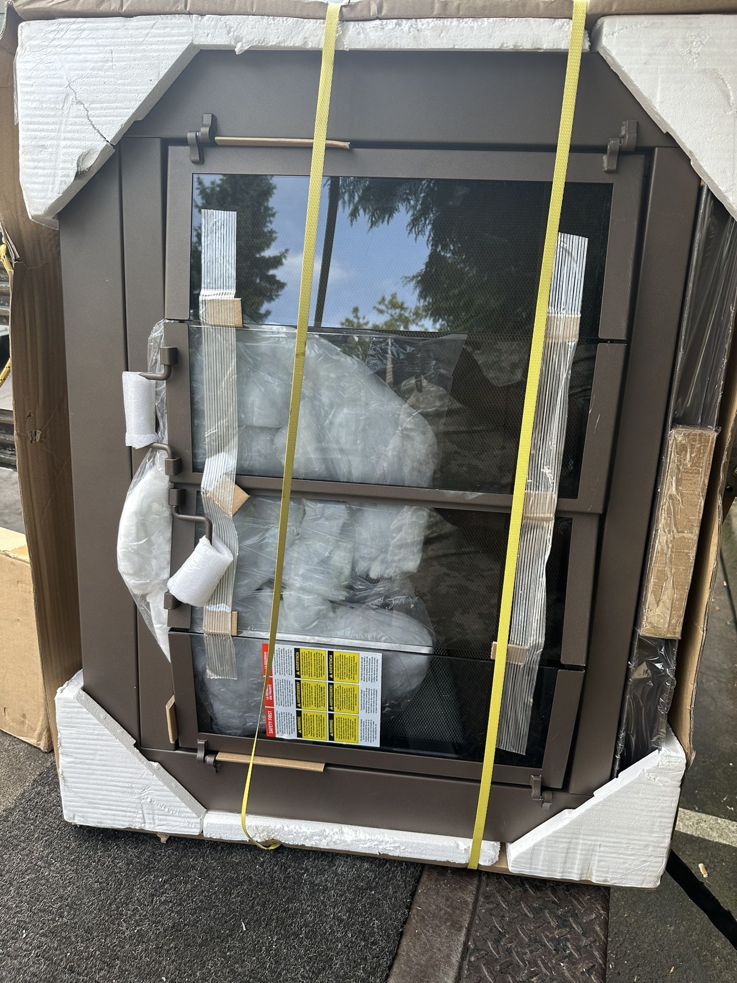 Brand new fireplace cover a light is brown color with built-in screen has never been used