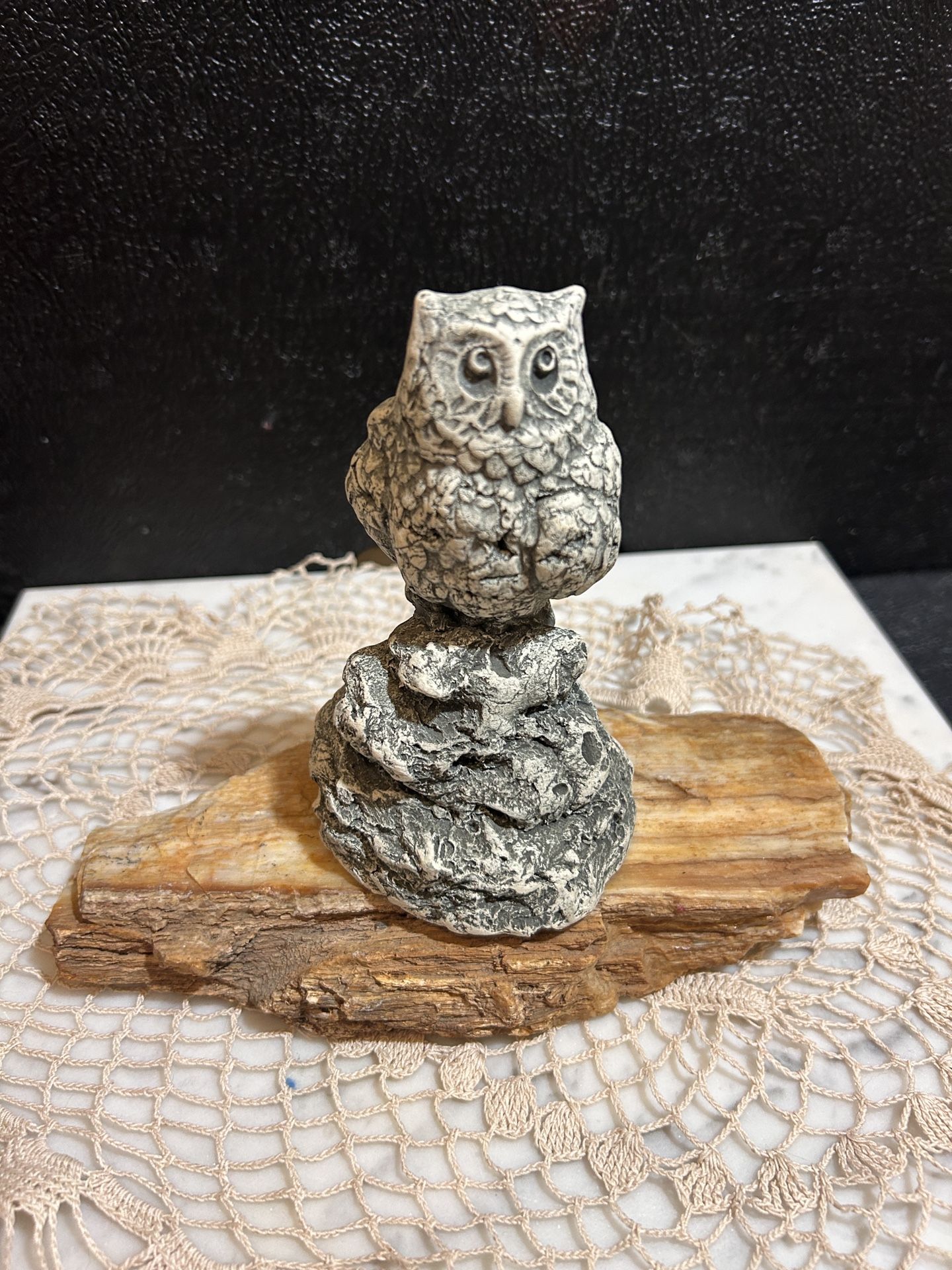 This handcrafted owl figurine is part of the iconic Shapes of Clay series by Stan Langtwait, made with volcanic ash from the 1980 eruption of Mount St. Helens. Blending natural clay with ash, the sculpture captures the rugged beauty of the Pacific Northwest and the timeless symbolism of the owl. • Artist: Stan Langtwait • Material: Clay and Mt. St. Helens volcanic ash • Style: Rustic, handmade, collectible • Dimensions: Approx. 5–6 inches tall • Condition: Excellent – no chips or cracks A meaningful gift for collectors, nature lovers, or anyone drawn to the mystique of handmade Northwest art.