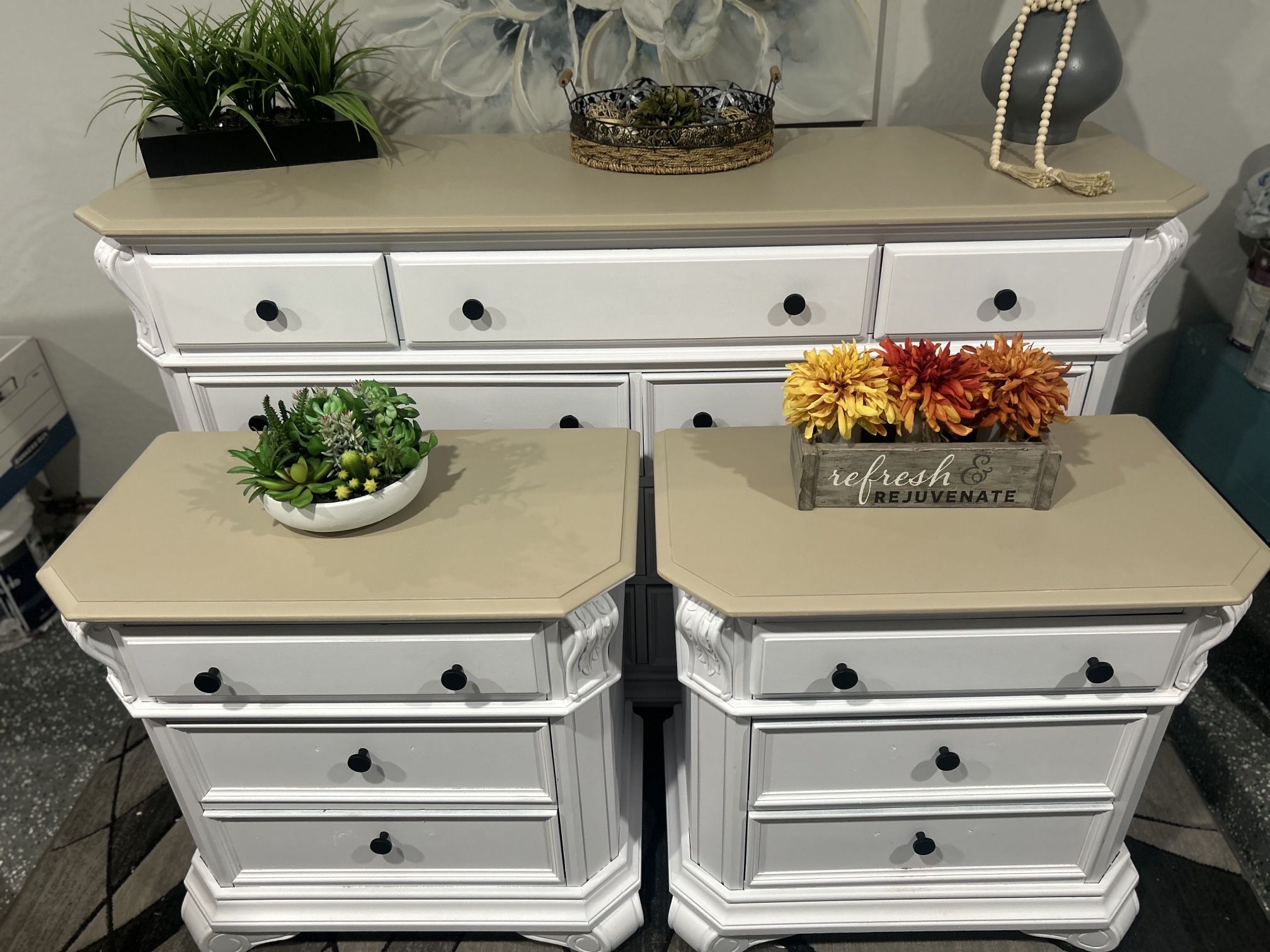 Dresser Set with 2 matching nightstands in perfect condition Delivery available for an extra fee Dresser 66”W 20” D 42”H Nightstands 30”W 17”D 30” H