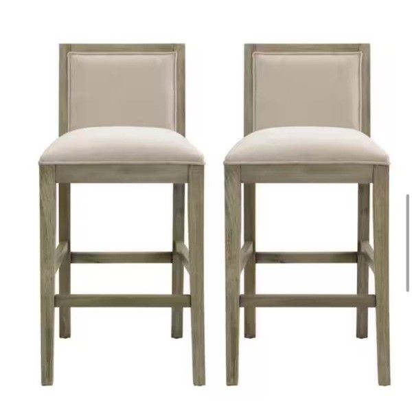 CHRISTOPHER KNIGHT HOME Kyrren 30.5 in. Modern Upholstered and Wood Counter Stools with Cushioned Seat and Back, Light Taupe, (Set of 2)