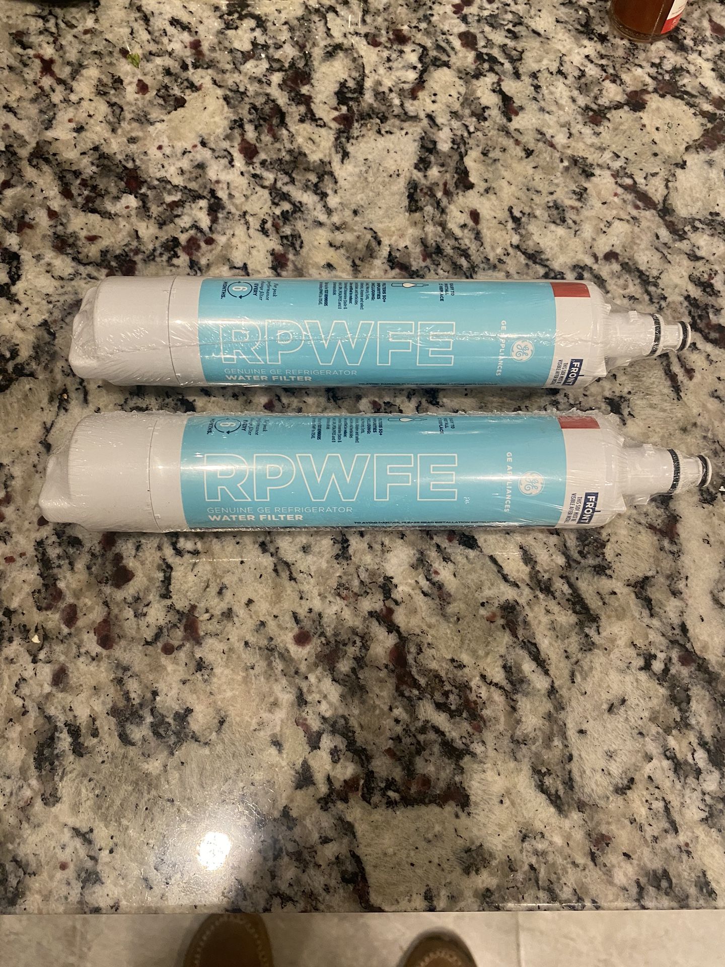 GE appliances (part # RPWFW) refrigerator water filter. Have 2 brand new still in wrapper GE refrigerator water filters asking 2 for $60 or 1 for $35.
