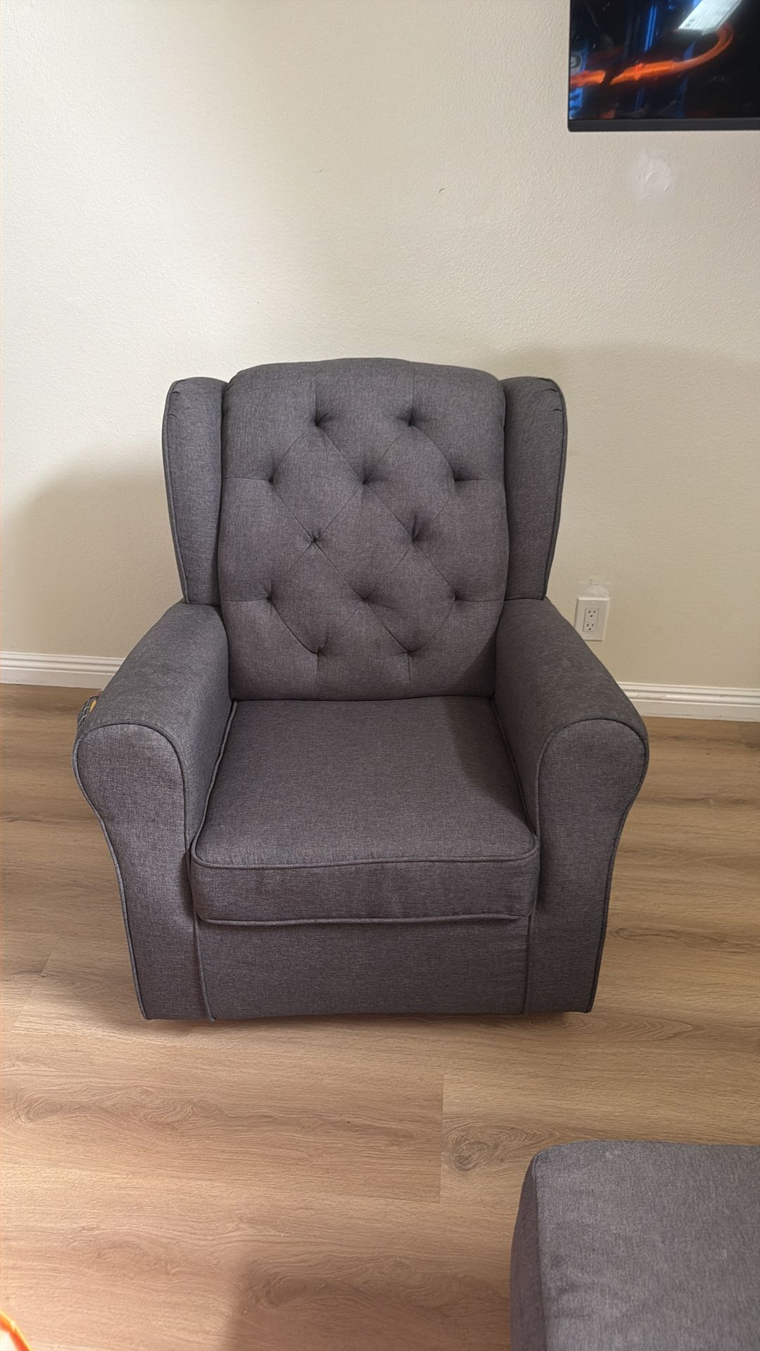it’s in great condition and super comfy. Does a full 360 spin and rocks back and forth